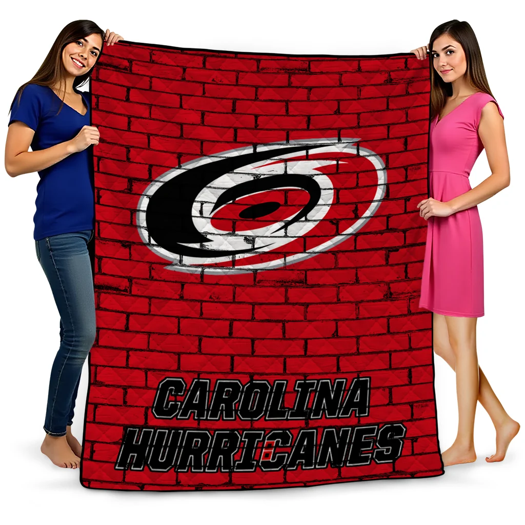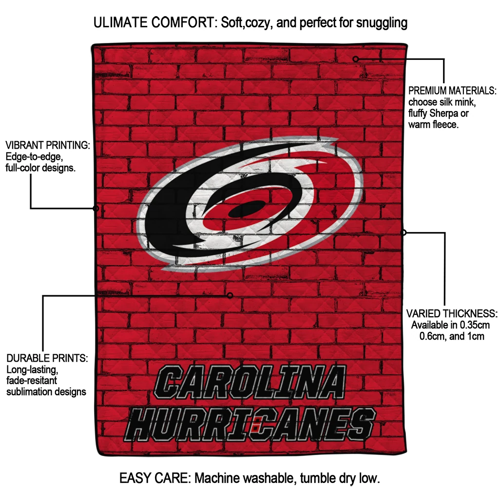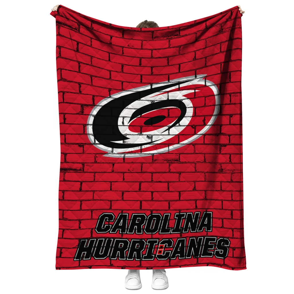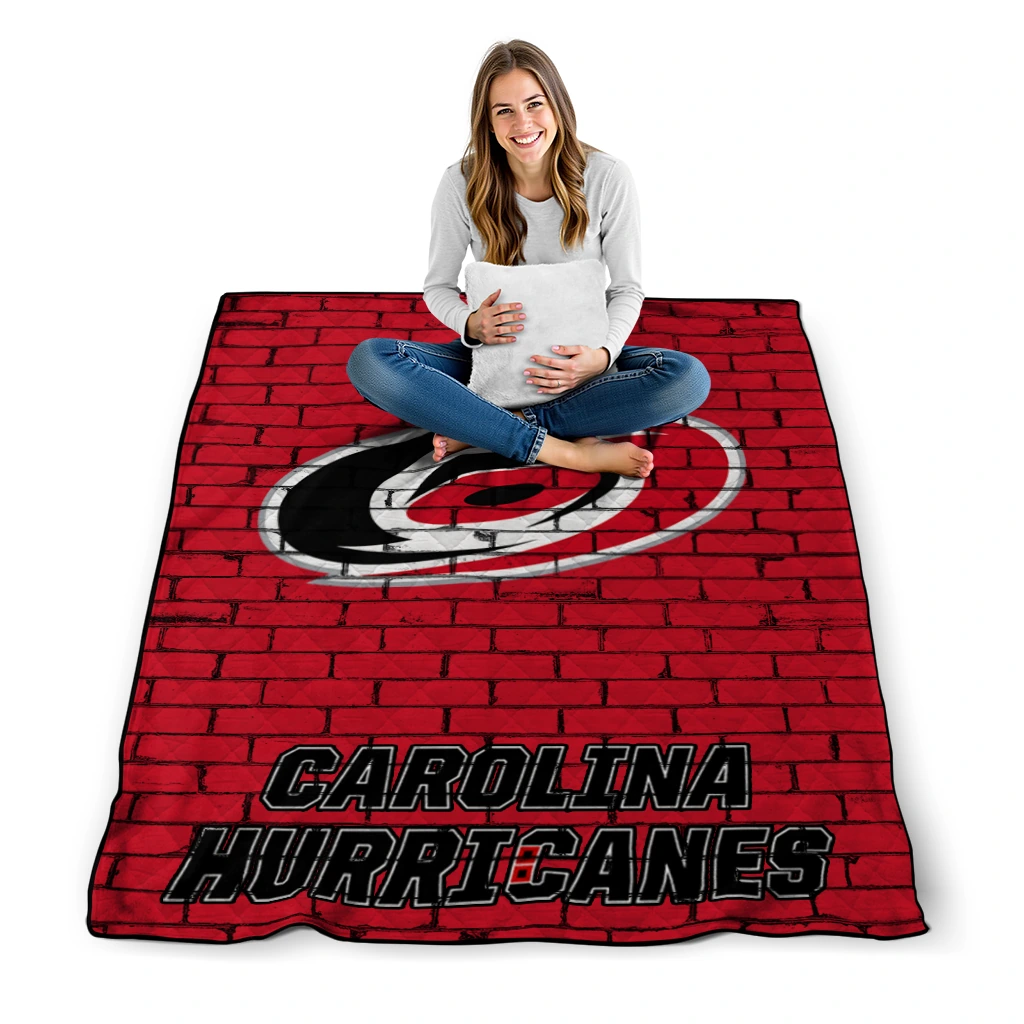 Wrap yourself in warmth and pride with the Carolina Hurricanes Brick Grid Red Quilt Blanket from the Carolina Hurricanes Blankets collection at Yes That Blanket. Made from 100% premium quilting-weight polyester blended with a touch of microfiber, this quilt offers a smooth, soft finish you’ll love. Choose between two quilting styles—Stipple or Diagonal—and enjoy the comfort of a cotton-filled layer inside that adds extra coziness for every season. The border is available in classic black or white, giving your design a clean, timeless edge.