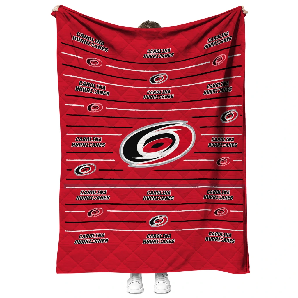 Carolina Hurricanes Handdrawn Stripes Red Quilt Blanket