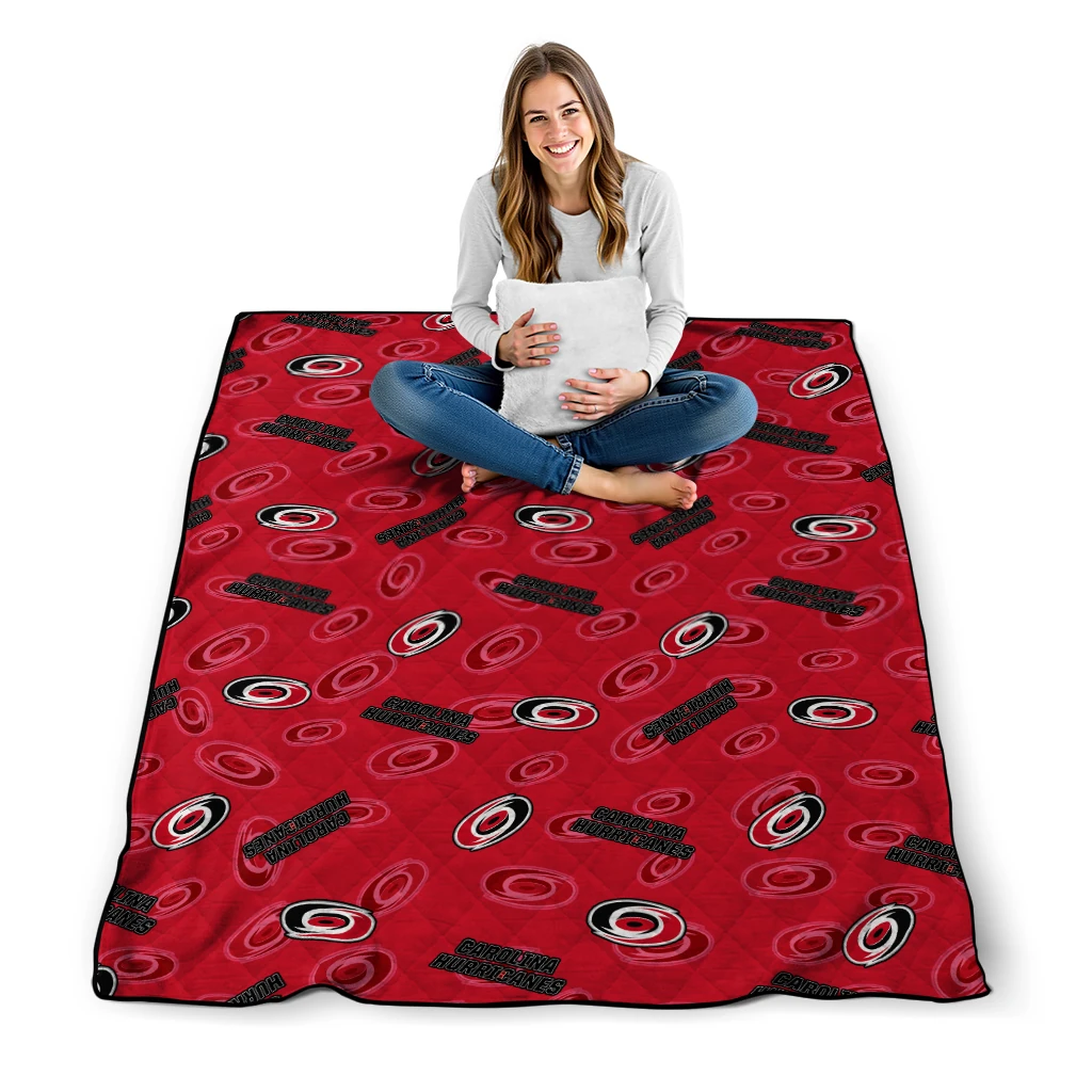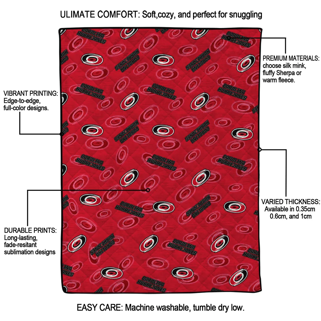 Wrap yourself in warmth and pride with the Carolina Hurricanes Solid Classic Red Quilt Blanket from the Carolina Hurricanes Blankets collection at Yes That Blanket. Made from 100% premium quilting-weight polyester blended with a touch of microfiber, this quilt offers a smooth, soft finish you’ll love. Choose between two quilting styles—Stipple or Diagonal—and enjoy the comfort of a cotton-filled layer inside that adds extra coziness for every season. The border is available in classic black or white, giving your design a clean, timeless edge.