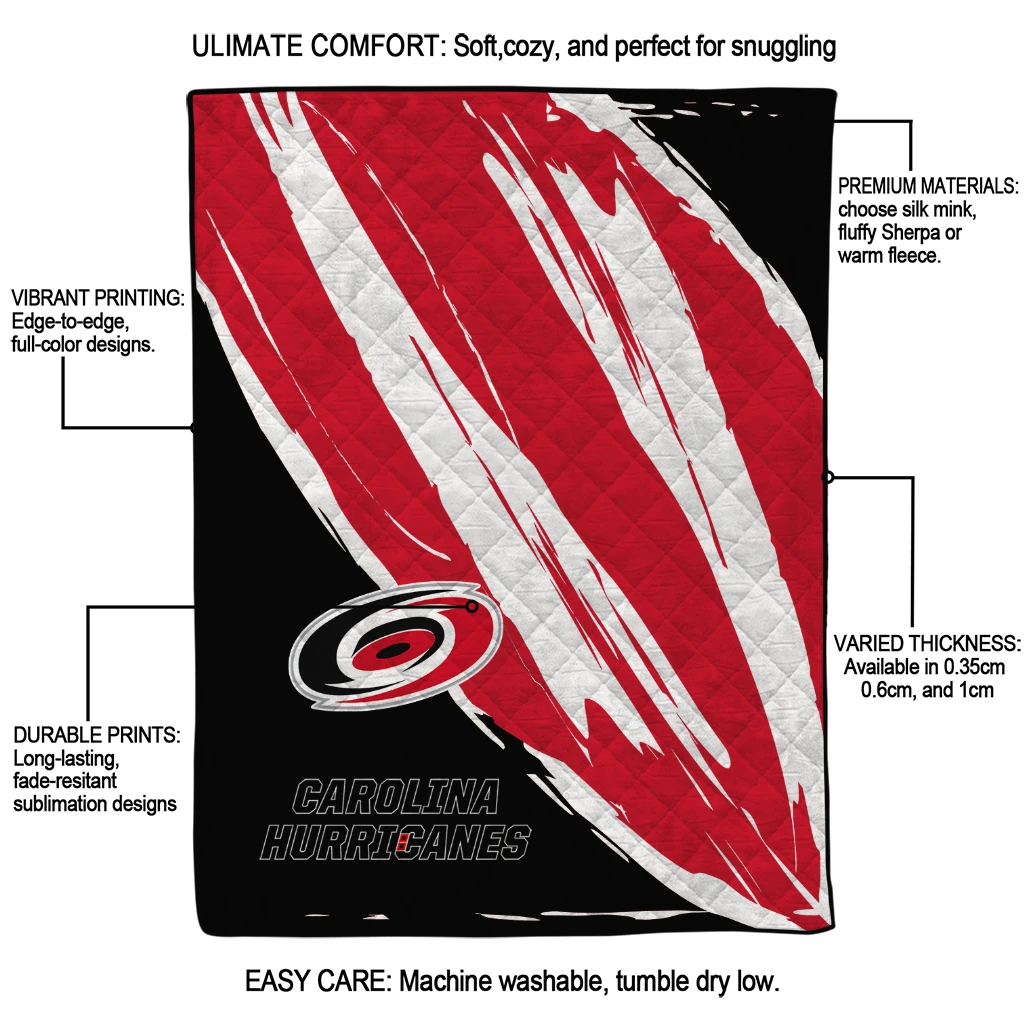 Wrap yourself in warmth and pride with the Carolina Hurricanes Stroke Art Red White Quilt Blanket from the Carolina Hurricanes Blankets collection at Yes That Blanket. Made from 100% premium quilting-weight polyester blended with a touch of microfiber, this quilt offers a smooth, soft finish you’ll love. Choose between two quilting styles—Stipple or Diagonal—and enjoy the comfort of a cotton-filled layer inside that adds extra coziness for every season. The border is available in classic black or white, giving your design a clean, timeless edge.