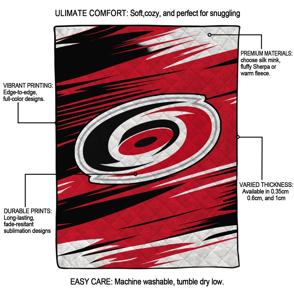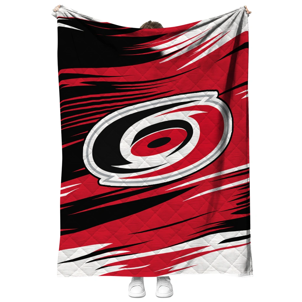 Wrap yourself in warmth and pride with the Carolina Hurricanes Wild Lines Red White Quilt Blanket from the Carolina Hurricanes Blankets collection at Yes That Blanket. Made from 100% premium quilting-weight polyester blended with a touch of microfiber, this quilt offers a smooth, soft finish you’ll love. Choose between two quilting styles—Stipple or Diagonal—and enjoy the comfort of a cotton-filled layer inside that adds extra coziness for every season. The border is available in classic black or white, giving your design a clean, timeless edge.