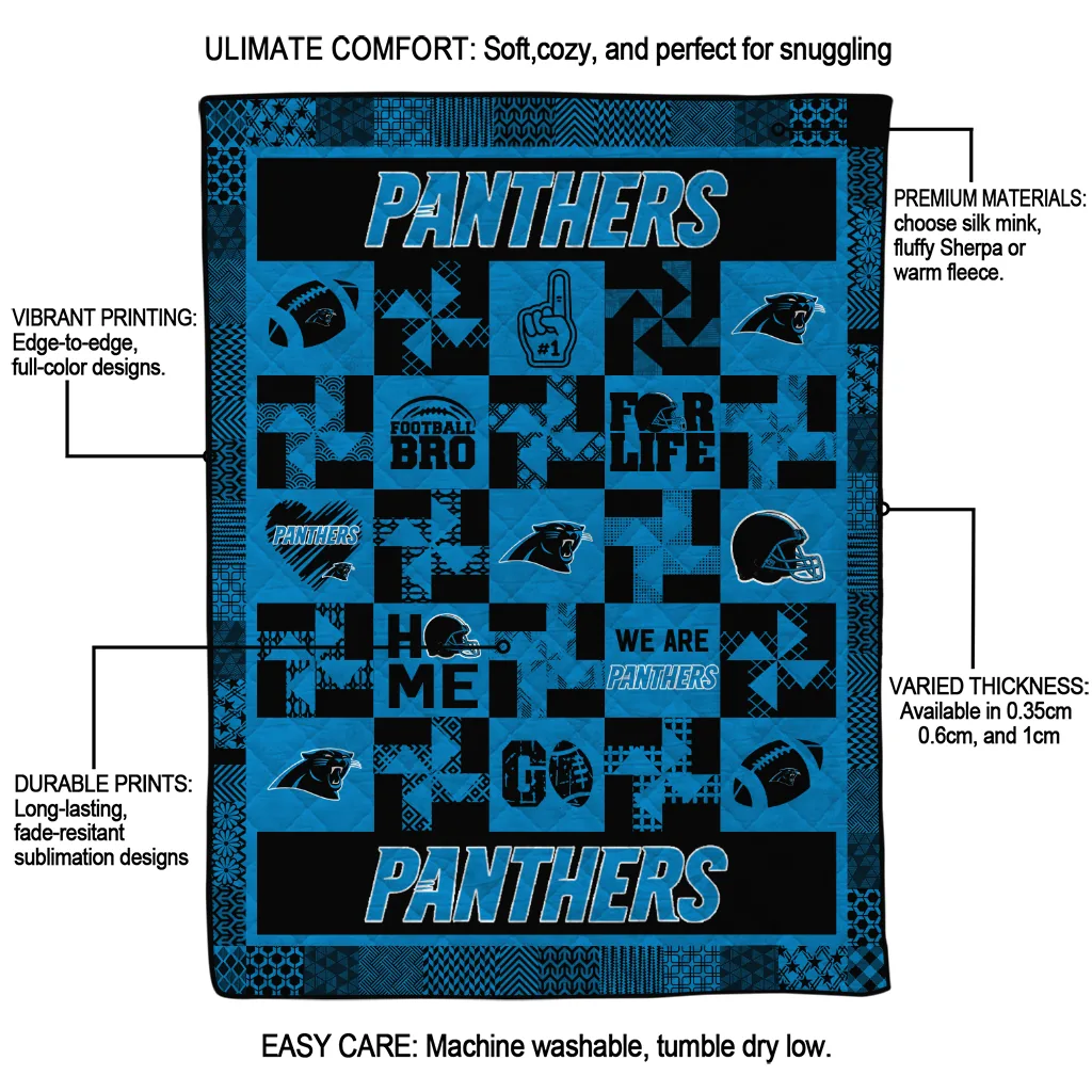 Wrap yourself in warmth and pride with the Carolina Panthers Helmet Heart Blue Quilt Blanket from the Carolina Panthers Blankets collection at Yes That Blanket. Made from 100% premium quilting-weight polyester blended with a touch of microfiber, this quilt offers a smooth, soft finish you’ll love. Choose between two quilting styles—Stipple or Diagonal—and enjoy the comfort of a cotton-filled layer inside that adds extra coziness for every season. The border is available in classic black or white, giving your design a clean, timeless edge.