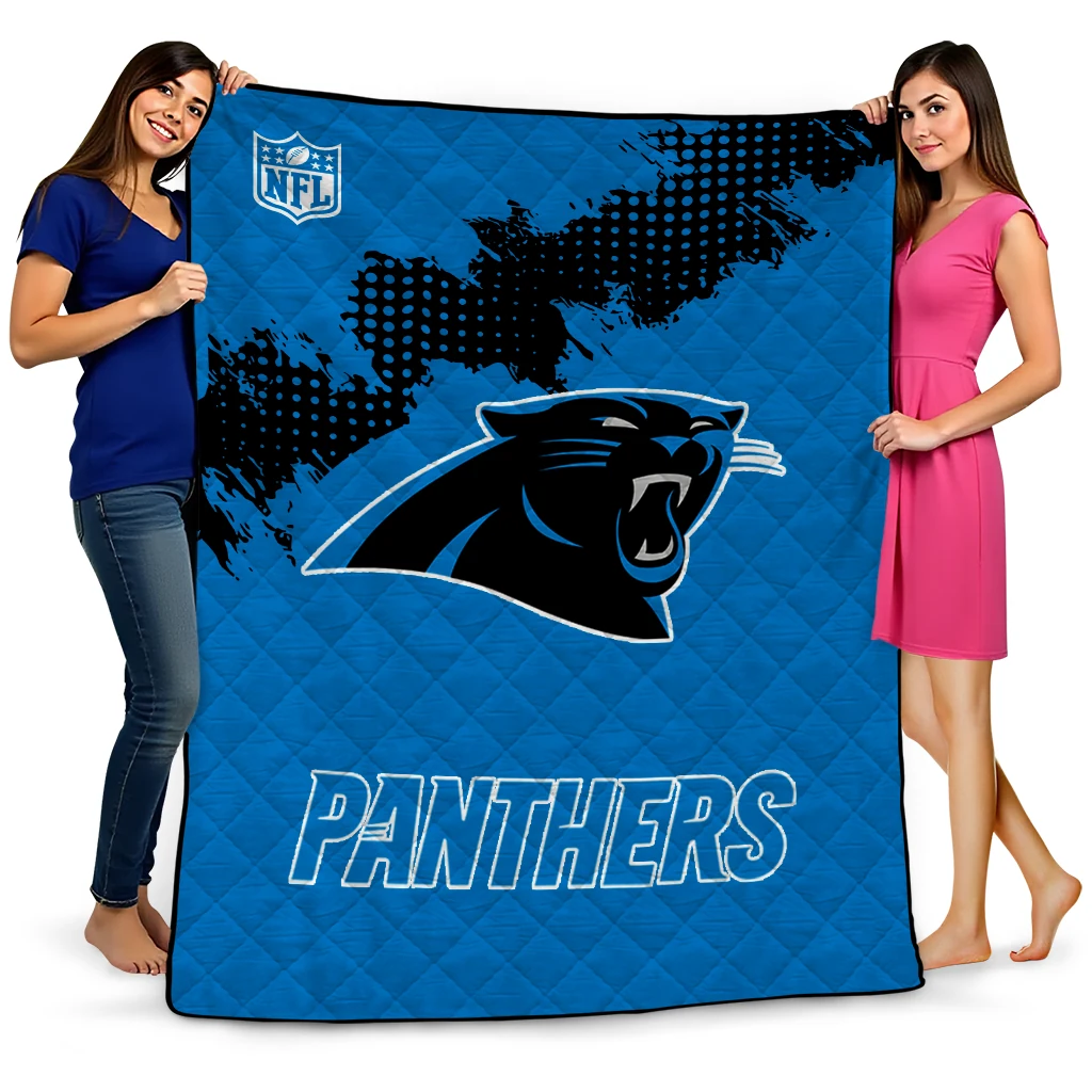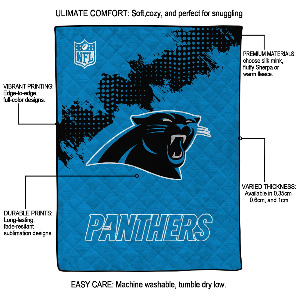 Wrap yourself in warmth and pride with the Carolina Panthers Shield Badge Blue Quilt Blanket from the Carolina Panthers Blankets collection at Yes That Blanket. Made from 100% premium quilting-weight polyester blended with a touch of microfiber, this quilt offers a smooth, soft finish you’ll love. Choose between two quilting styles—Stipple or Diagonal—and enjoy the comfort of a cotton-filled layer inside that adds extra coziness for every season. The border is available in classic black or white, giving your design a clean, timeless edge.