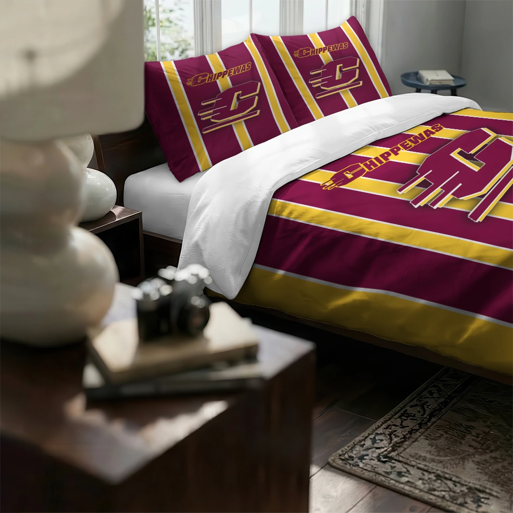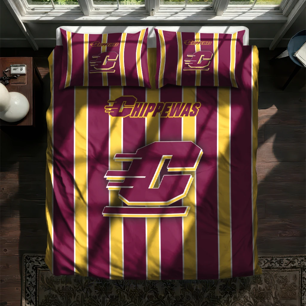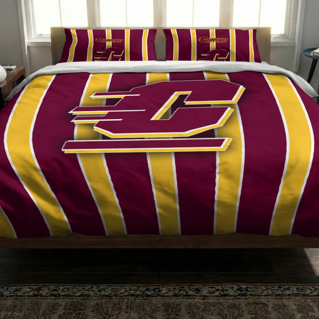 Central Michigan Chippewas Bedding Set – Stripe Style Maroon Yellow