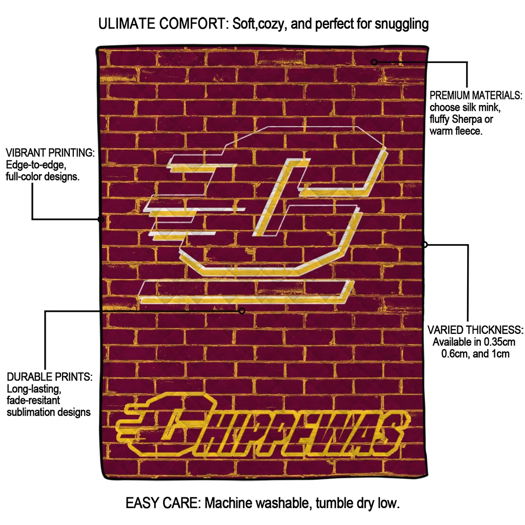 Wrap yourself in warmth and pride with the Central Michigan Chippewas Brick Grid Maroon Quilt Blanket from the Central Michigan Chippewas Blankets collection at Yes That Blanket. Made from 100% premium quilting-weight polyester blended with a touch of microfiber, this quilt offers a smooth, soft finish you’ll love. Choose between two quilting styles—Stipple or Diagonal—and enjoy the comfort of a cotton-filled layer inside that adds extra coziness for every season. The border is available in classic black or white, giving your design a clean, timeless edge.