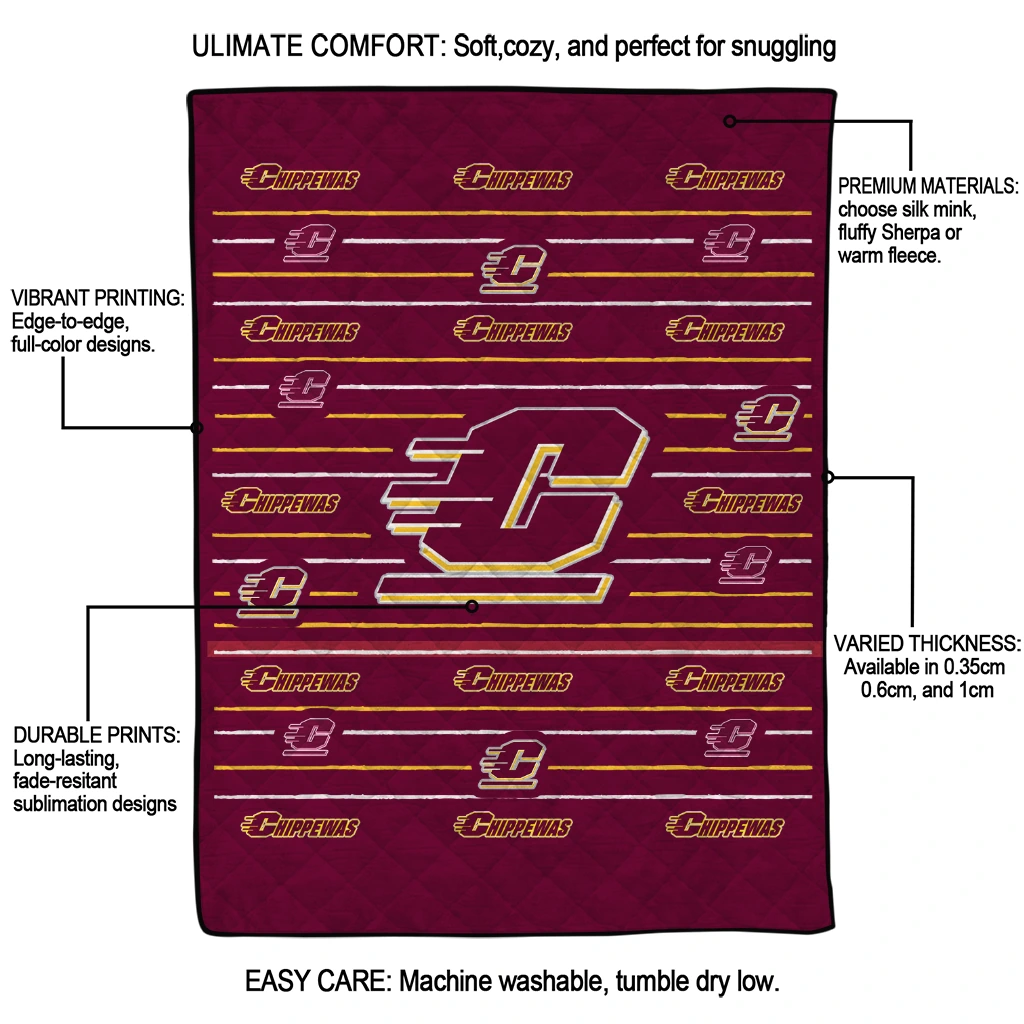Wrap yourself in warmth and pride with the Central Michigan Chippewas Handdrawn Stripes Maroon Quilt Blanket from the Central Michigan Chippewas Blankets collection at Yes That Blanket. Made from 100% premium quilting-weight polyester blended with a touch of microfiber, this quilt offers a smooth, soft finish you’ll love. Choose between two quilting styles—Stipple or Diagonal—and enjoy the comfort of a cotton-filled layer inside that adds extra coziness for every season. The border is available in classic black or white, giving your design a clean, timeless edge.