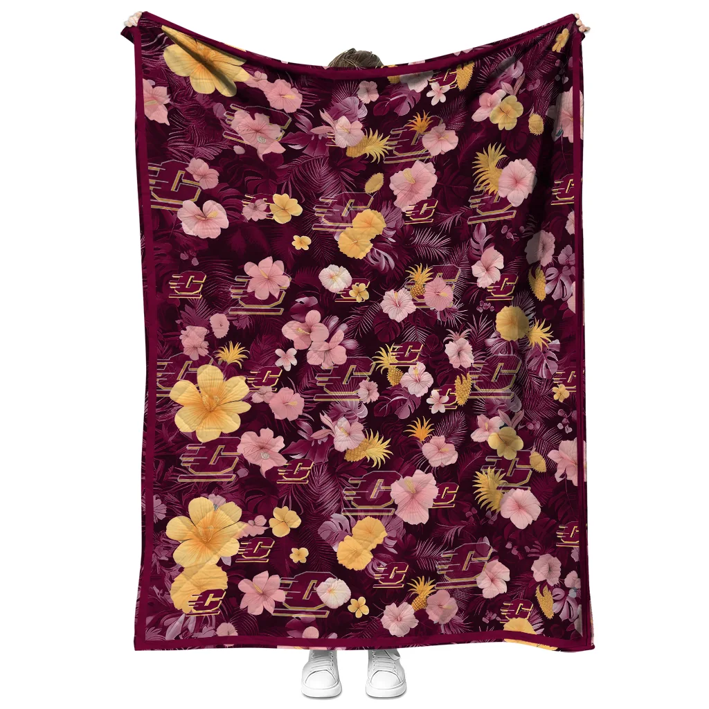 Central Michigan Chippewas Hibiscus Foliage Maroon Quilt Blanket