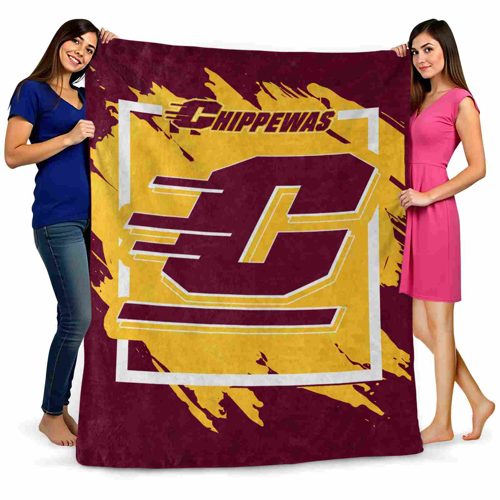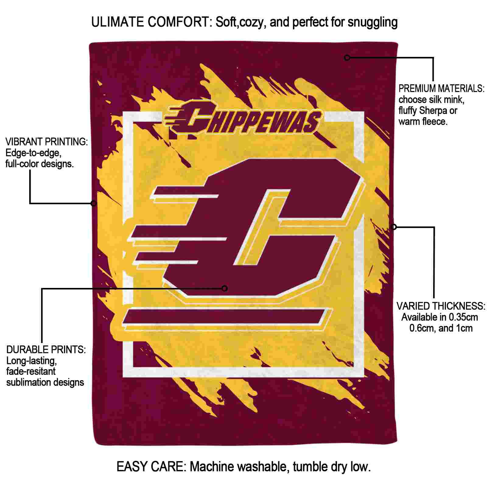 Central Michigan Chippewas Splatter Effect Maroon Blanket