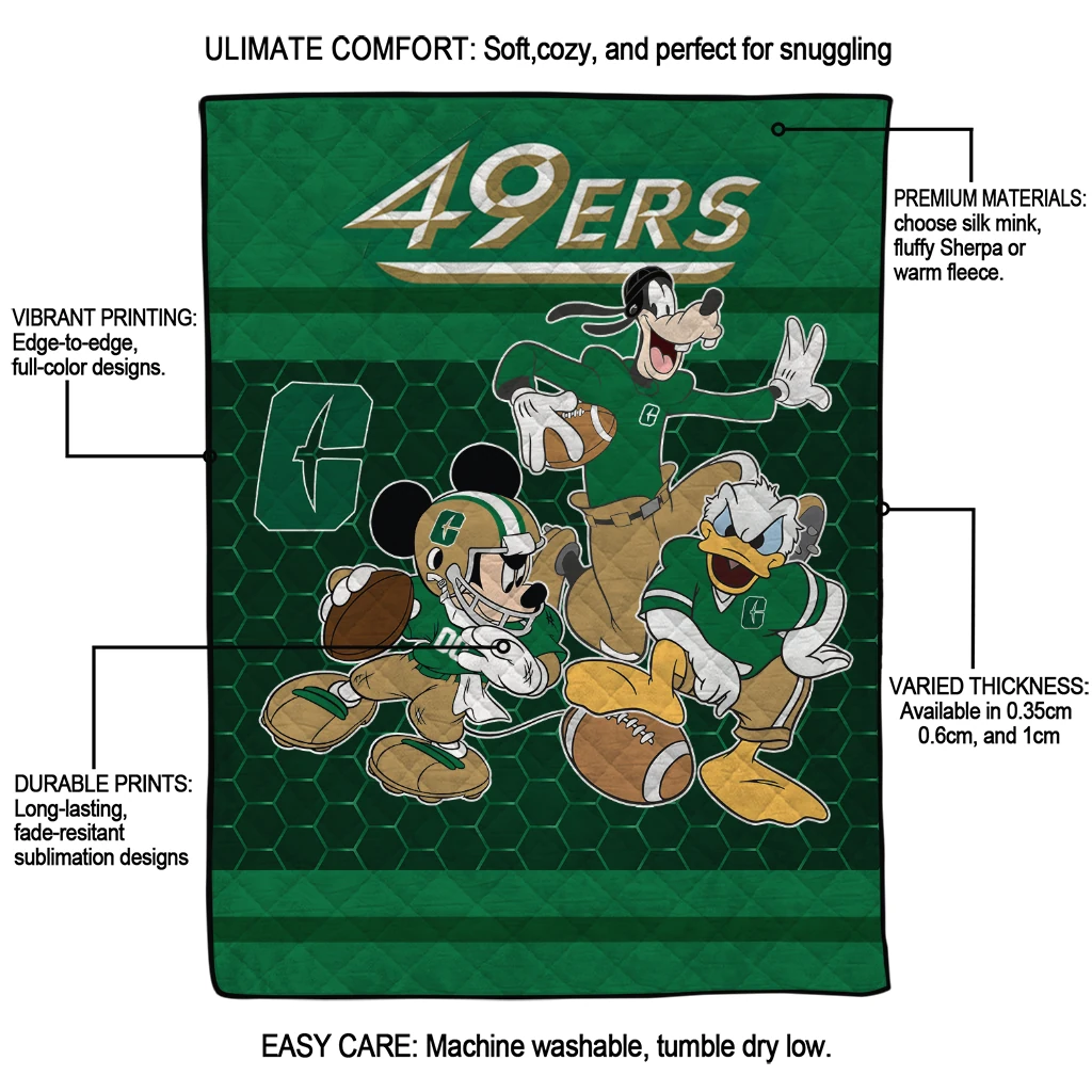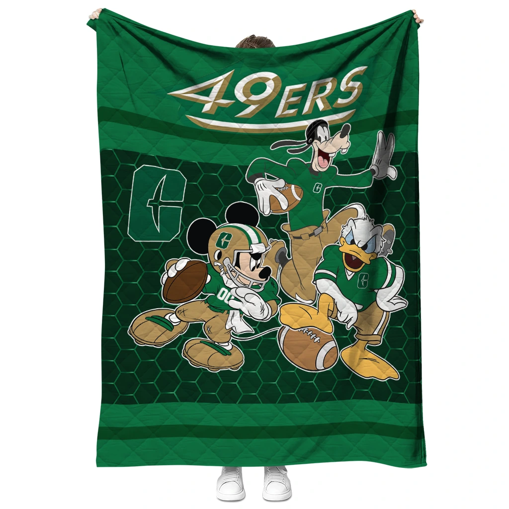 Charlotte 49ers Disney Football Green Quilt Blanket