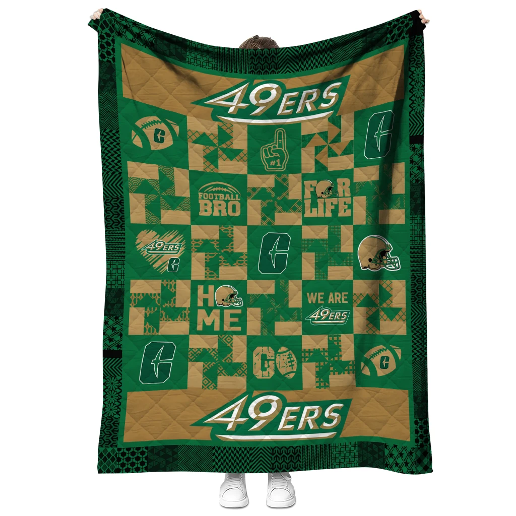 Charlotte 49ers Helmet Heart Green Quilt Blanket