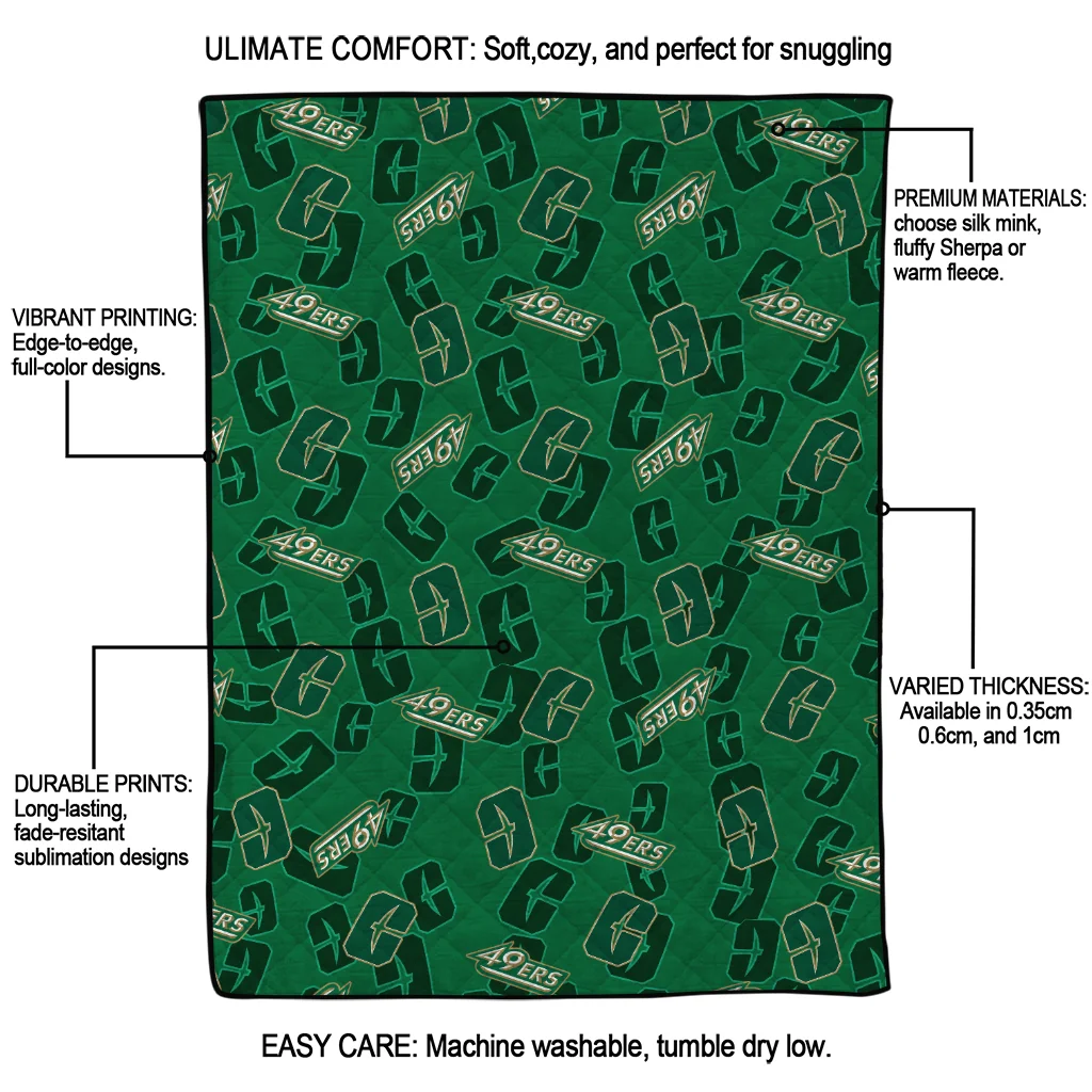 Wrap yourself in warmth and pride with the Charlotte 49ers Solid Classic Green Quilt Blanket from the Charlotte 49ers Blankets collection at Yes That Blanket. Made from 100% premium quilting-weight polyester blended with a touch of microfiber, this quilt offers a smooth, soft finish you’ll love. Choose between two quilting styles—Stipple or Diagonal—and enjoy the comfort of a cotton-filled layer inside that adds extra coziness for every season. The border is available in classic black or white, giving your design a clean, timeless edge.