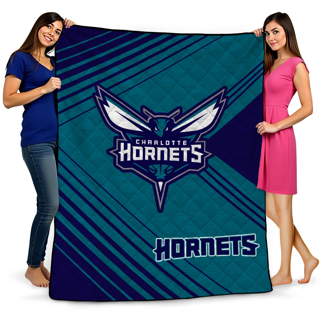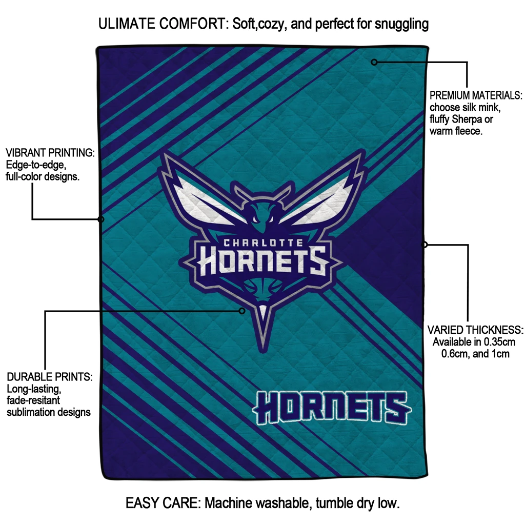 Wrap yourself in warmth and pride with the Charlotte Hornets Arrow Layers Teal Quilt Blanket from the Charlotte Hornets Blankets collection at Yes That Blanket. Made from 100% premium quilting-weight polyester blended with a touch of microfiber, this quilt offers a smooth, soft finish you’ll love. Choose between two quilting styles—Stipple or Diagonal—and enjoy the comfort of a cotton-filled layer inside that adds extra coziness for every season. The border is available in classic black or white, giving your design a clean, timeless edge.