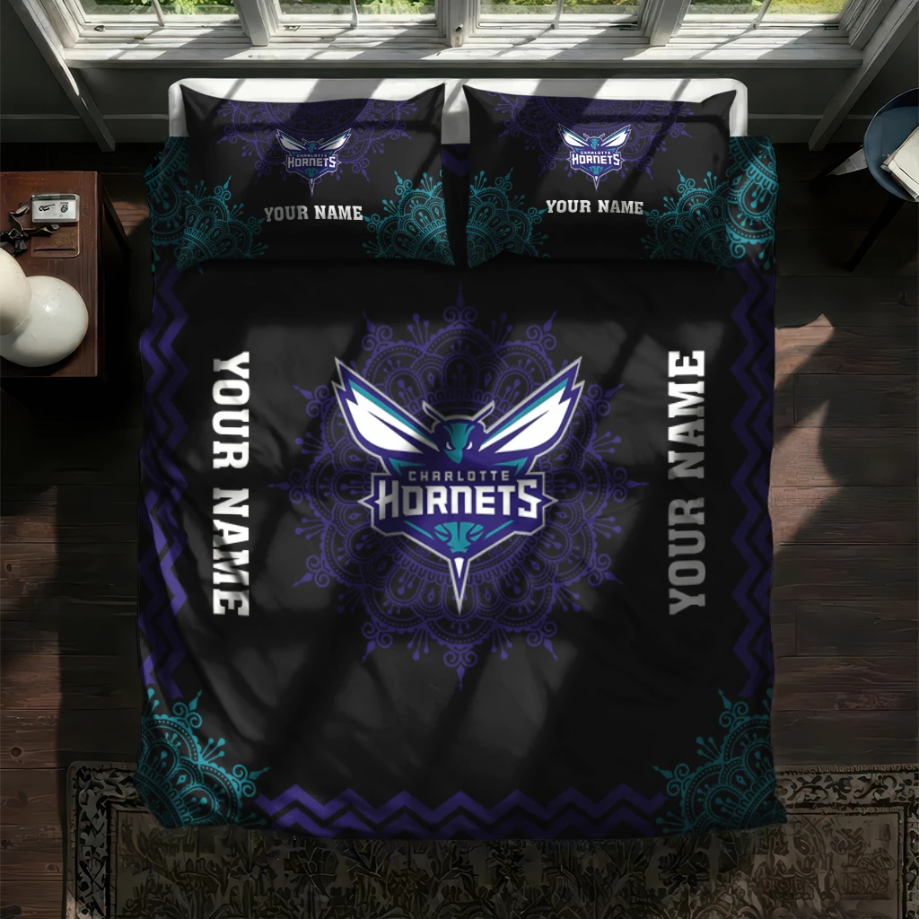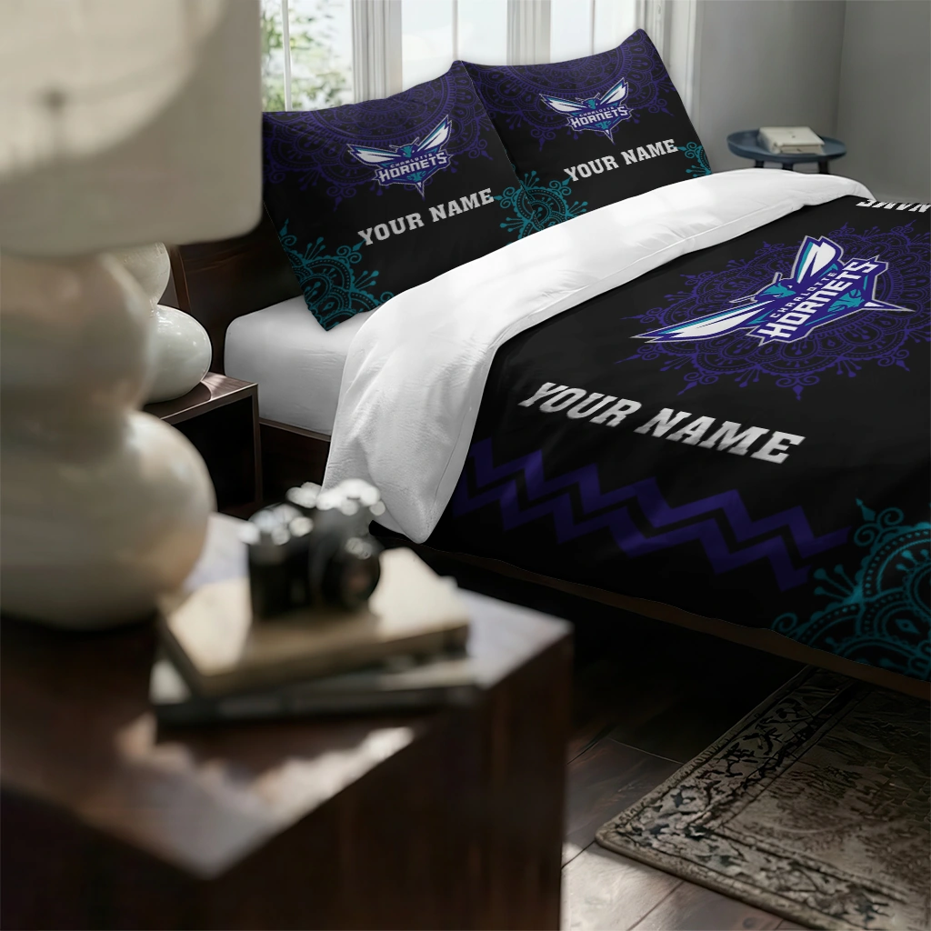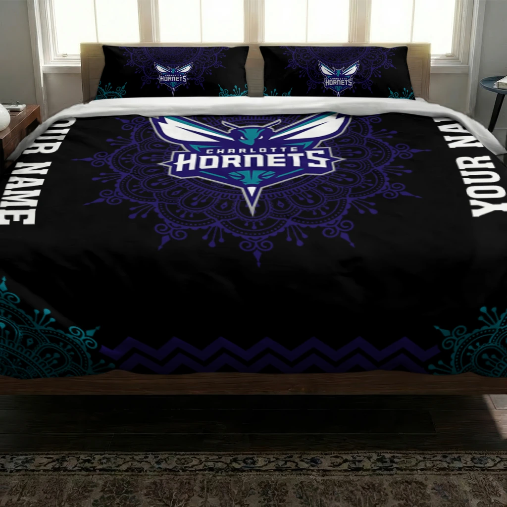 Charlotte Hornets Bedding Set – Customized Mandala Lacework Black Purple