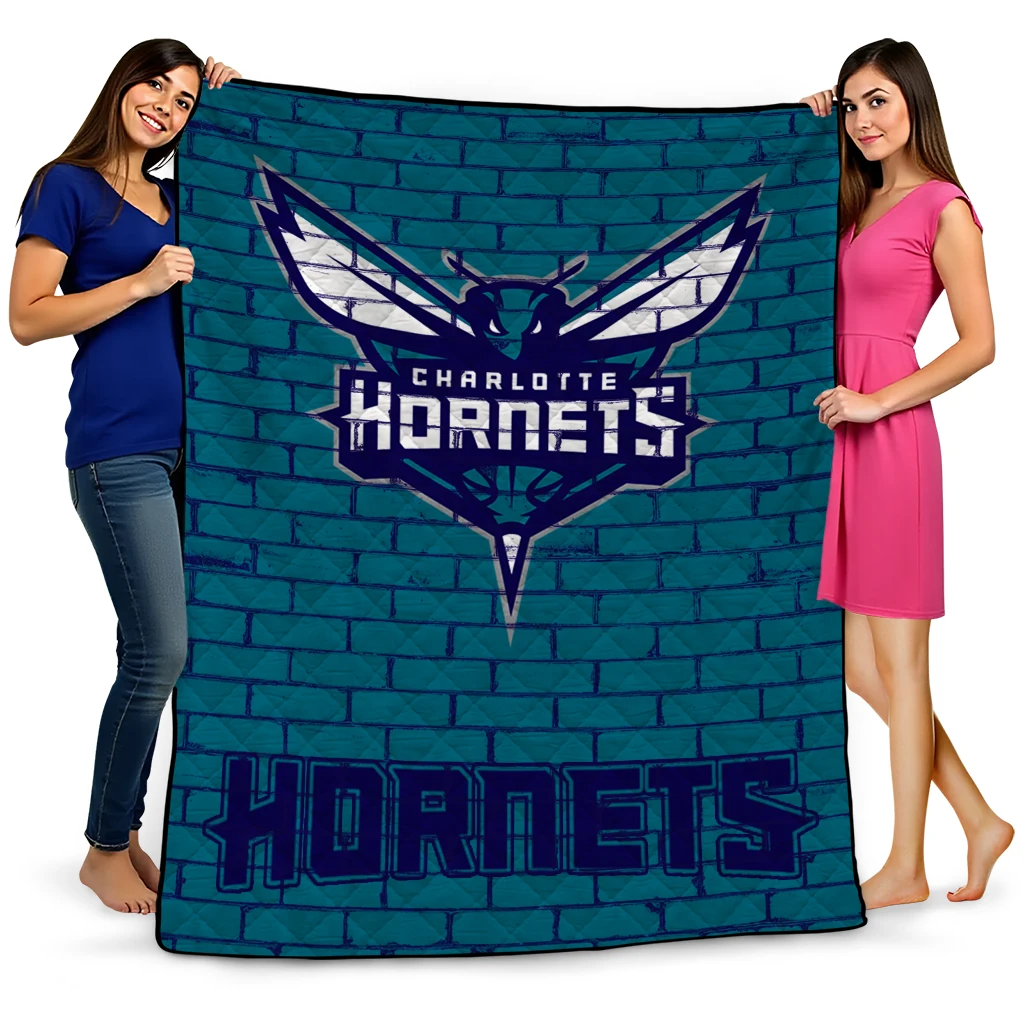 Wrap yourself in warmth and pride with the Charlotte Hornets Brick Grid Teal Quilt Blanket from the Charlotte Hornets Blankets collection at Yes That Blanket. Made from 100% premium quilting-weight polyester blended with a touch of microfiber, this quilt offers a smooth, soft finish you’ll love. Choose between two quilting styles—Stipple or Diagonal—and enjoy the comfort of a cotton-filled layer inside that adds extra coziness for every season. The border is available in classic black or white, giving your design a clean, timeless edge.