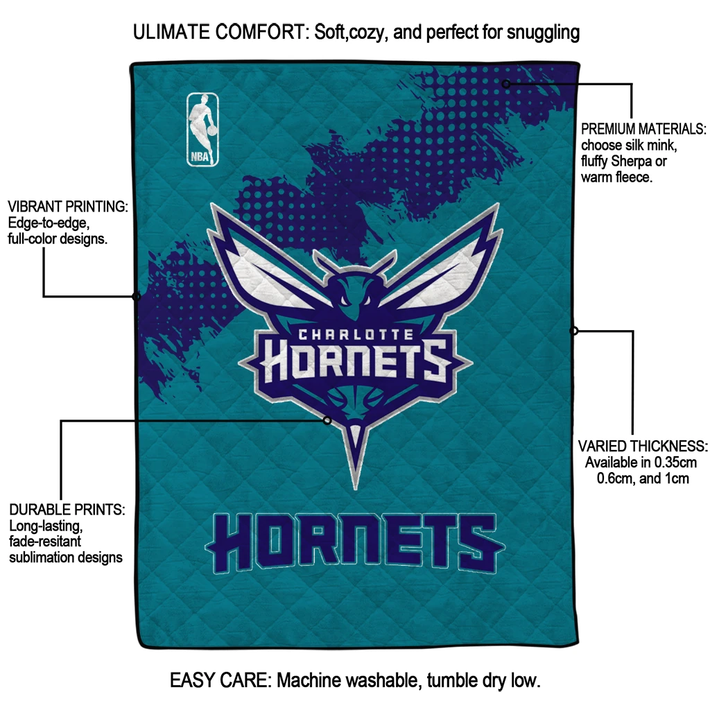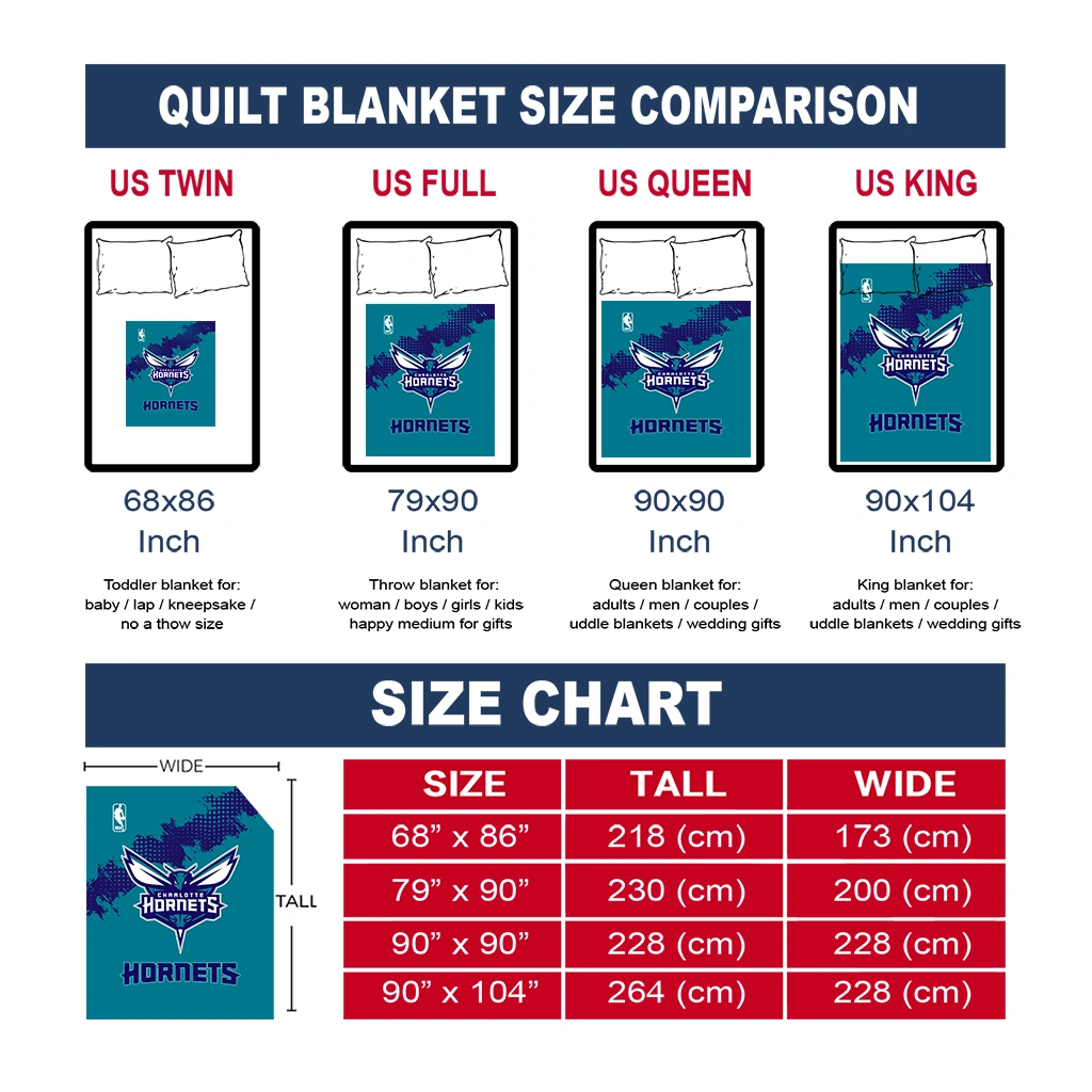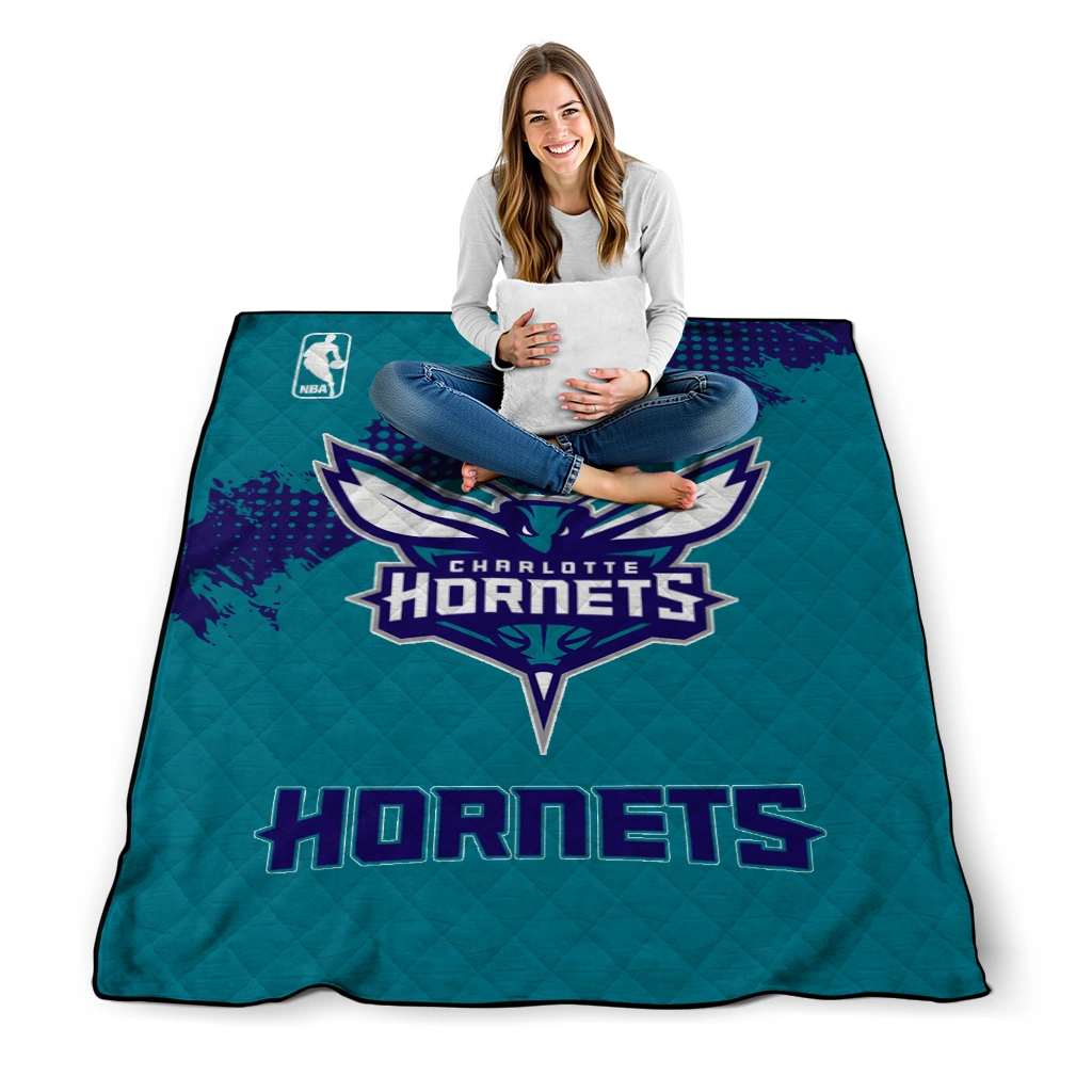 Wrap yourself in warmth and pride with the Charlotte Hornets NBA Grunge Teal Quilt Blanket from the Charlotte Hornets Blankets collection at Yes That Blanket. Made from 100% premium quilting-weight polyester blended with a touch of microfiber, this quilt offers a smooth, soft finish you’ll love. Choose between two quilting styles—Stipple or Diagonal—and enjoy the comfort of a cotton-filled layer inside that adds extra coziness for every season. The border is available in classic black or white, giving your design a clean, timeless edge.