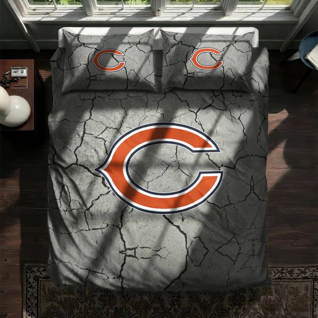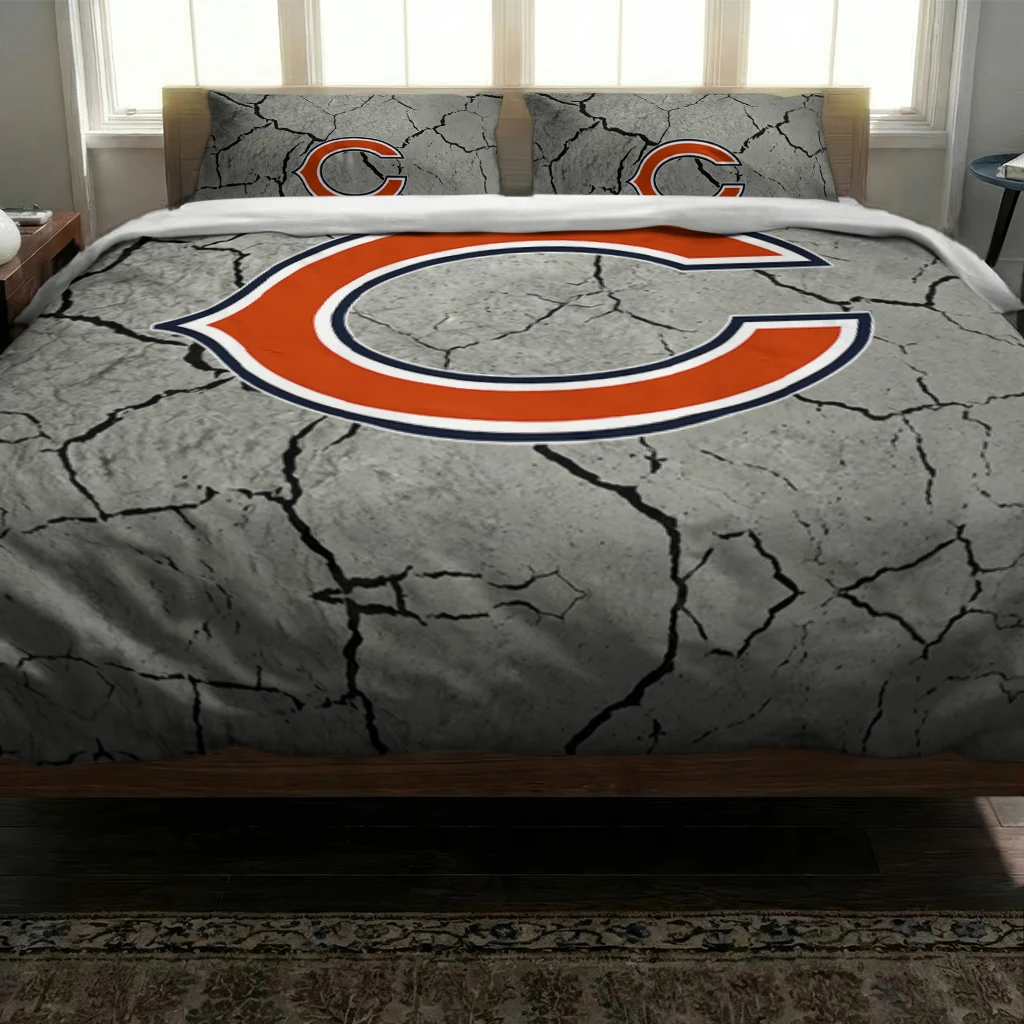 Chicago Bears Bedding Set – Cracked Texture Gray Orange