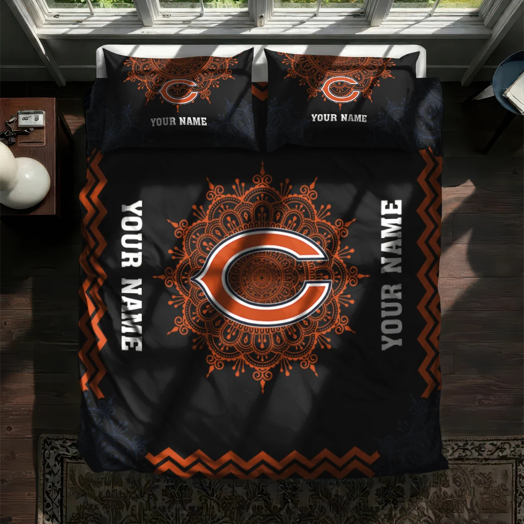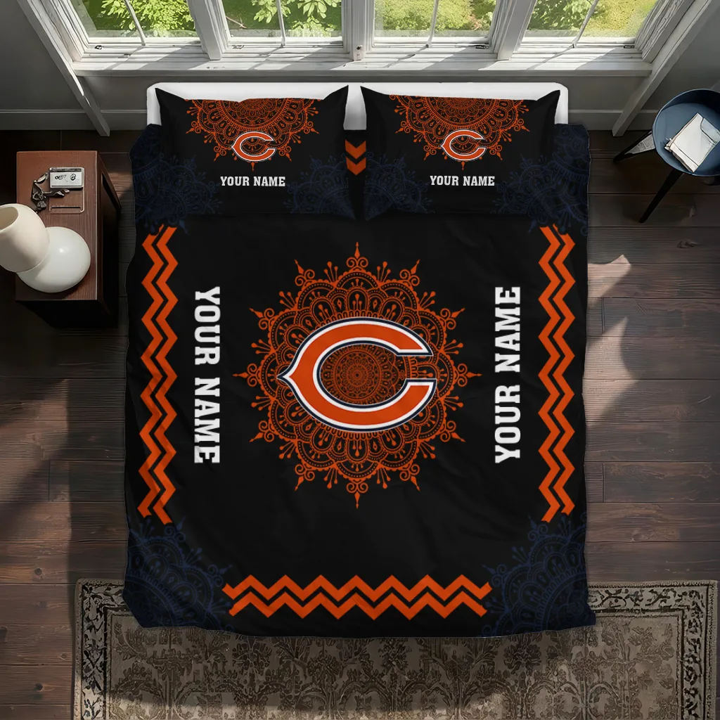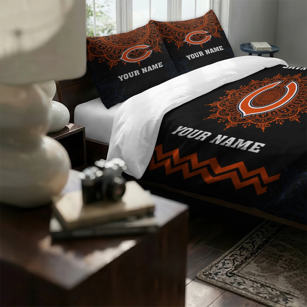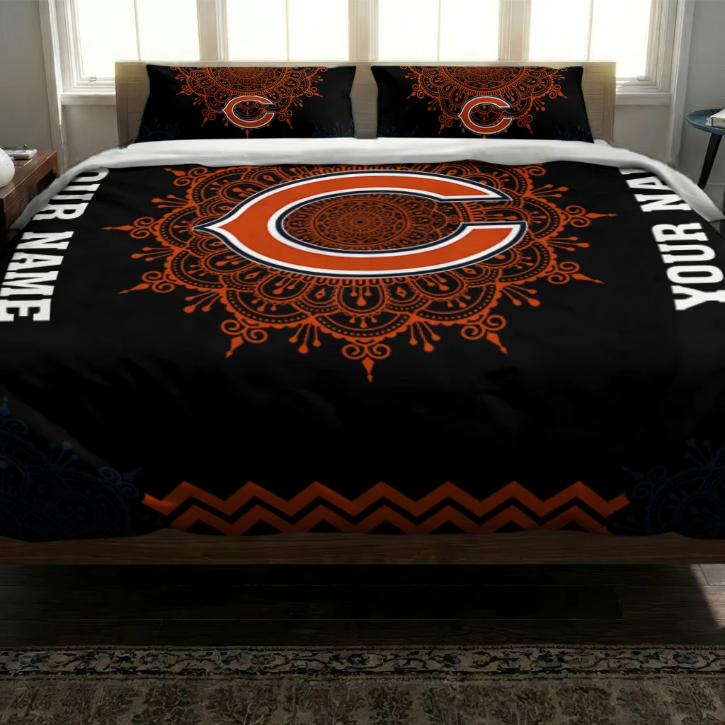 Chicago Bears Bedding Set – Customized Mandala Lacework Black Orange