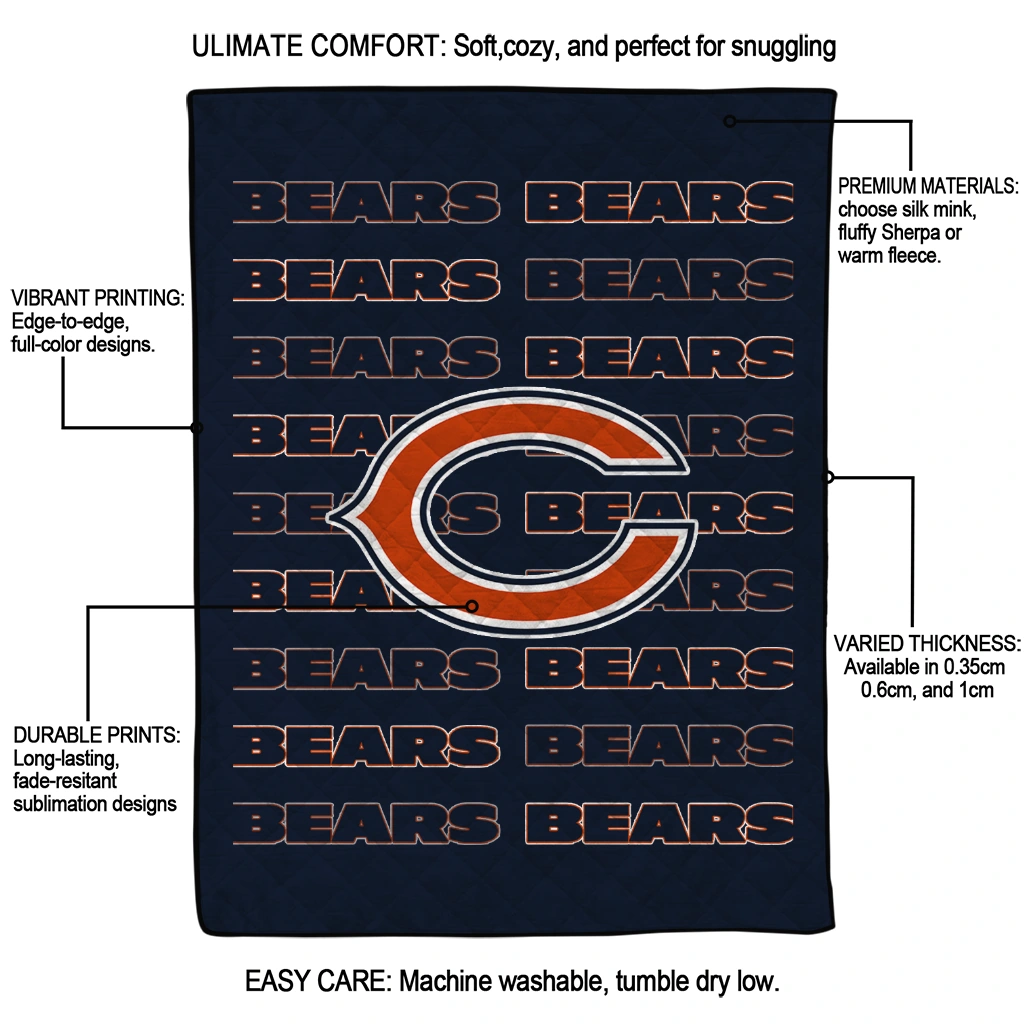 The Chicago Bears Bold Red Blue Quilt Blanket is more than a blanket—it’s everyday comfort, thoughtfully made. Crafted from premium quilting fabric with a soft microfiber touch, it offers a smooth hand-feel and lasting coziness. Layered quilting with a cotton-filled core provides adaptable warmth across seasons while maintaining a clean, tailored look on your bed or sofa.