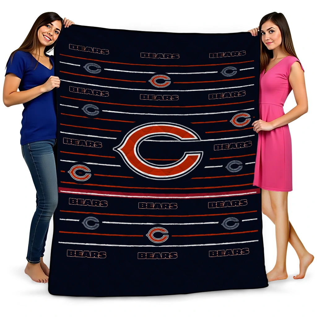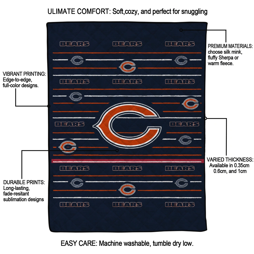 Wrap yourself in warmth and pride with the Chicago Bears Handdrawn Stripes Blue Quilt Blanket from the Chicago Bears Blankets collection at Yes That Blanket. Made from 100% premium quilting-weight polyester blended with a touch of microfiber, this quilt offers a smooth, soft finish you’ll love. Choose between two quilting styles—Stipple or Diagonal—and enjoy the comfort of a cotton-filled layer inside that adds extra coziness for every season. The border is available in classic black or white, giving your design a clean, timeless edge.