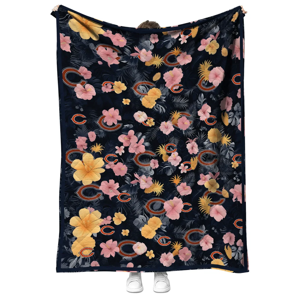 Wrap yourself in warmth and pride with the Chicago Bears Hibiscus Foliage Blue Quilt Blanket from the Chicago Bears Blankets collection at Yes That Blanket. Made from 100% premium quilting-weight polyester blended with a touch of microfiber, this quilt offers a smooth, soft finish you’ll love. Choose between two quilting styles—Stipple or Diagonal—and enjoy the comfort of a cotton-filled layer inside that adds extra coziness for every season. The border is available in classic black or white, giving your design a clean, timeless edge.