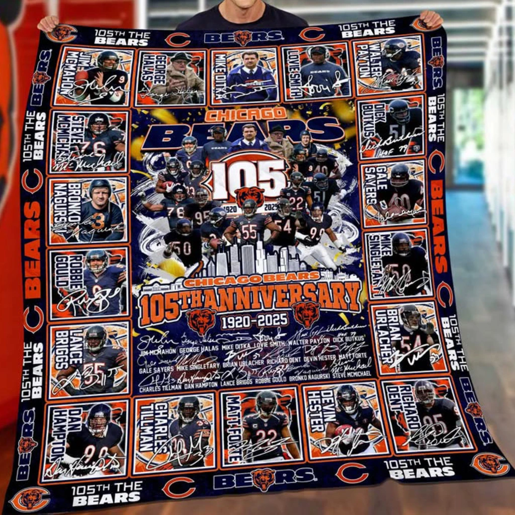 Chicago Bears Quilt Blanket – 105th Anniversary Navy Blue Orange