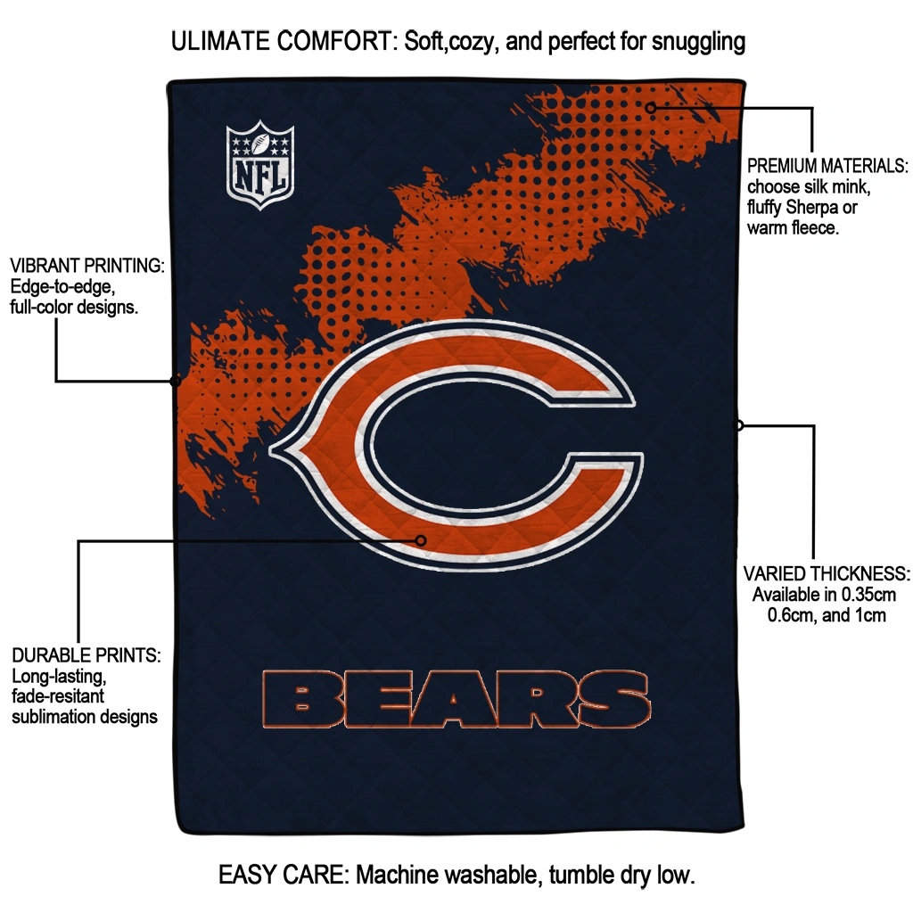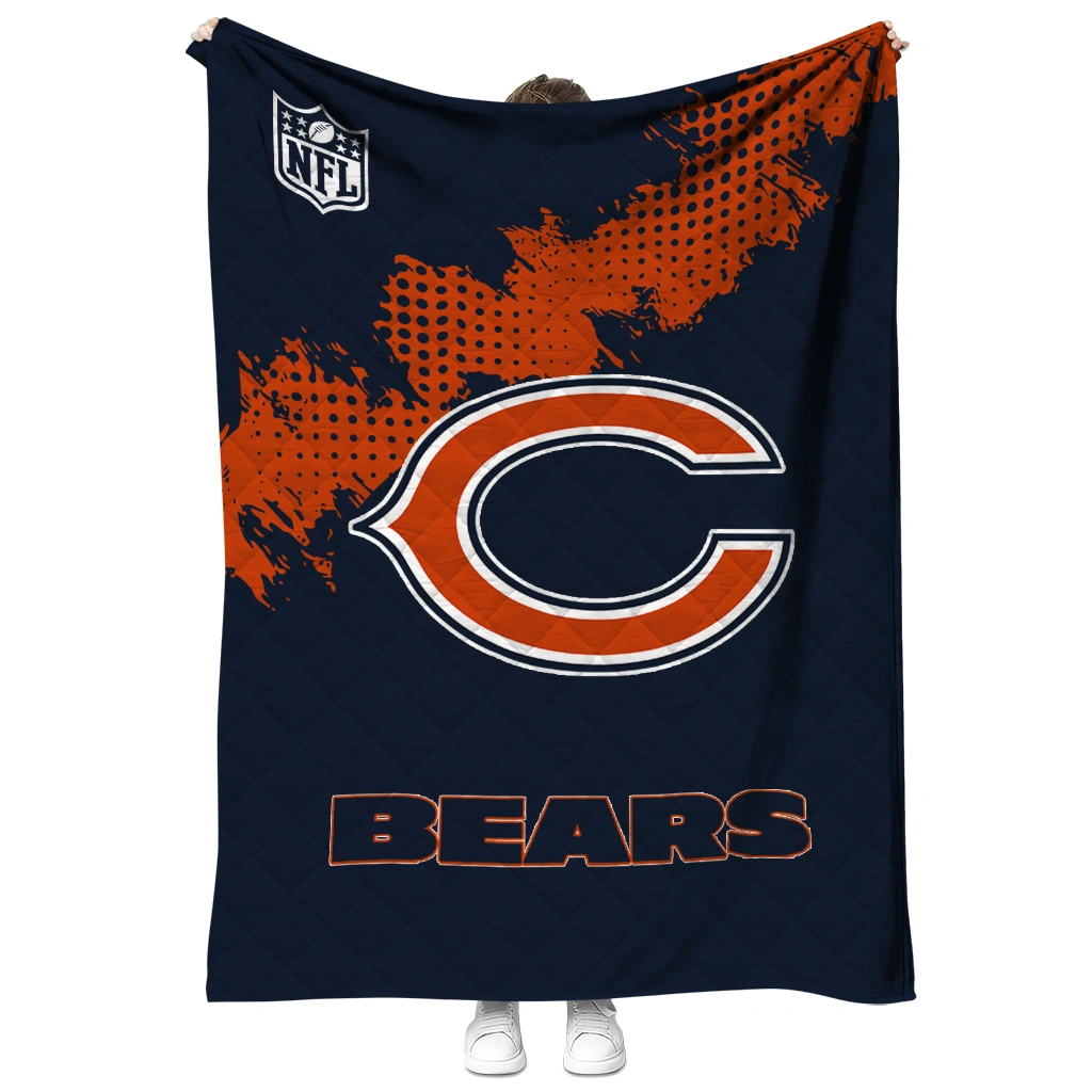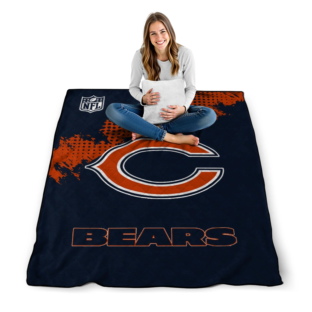 Wrap yourself in warmth and pride with the Chicago Bears Shield Badge Blue Quilt Blanket from the Chicago Bears Blankets collection at Yes That Blanket. Made from 100% premium quilting-weight polyester blended with a touch of microfiber, this quilt offers a smooth, soft finish you’ll love. Choose between two quilting styles—Stipple or Diagonal—and enjoy the comfort of a cotton-filled layer inside that adds extra coziness for every season. The border is available in classic black or white, giving your design a clean, timeless edge.