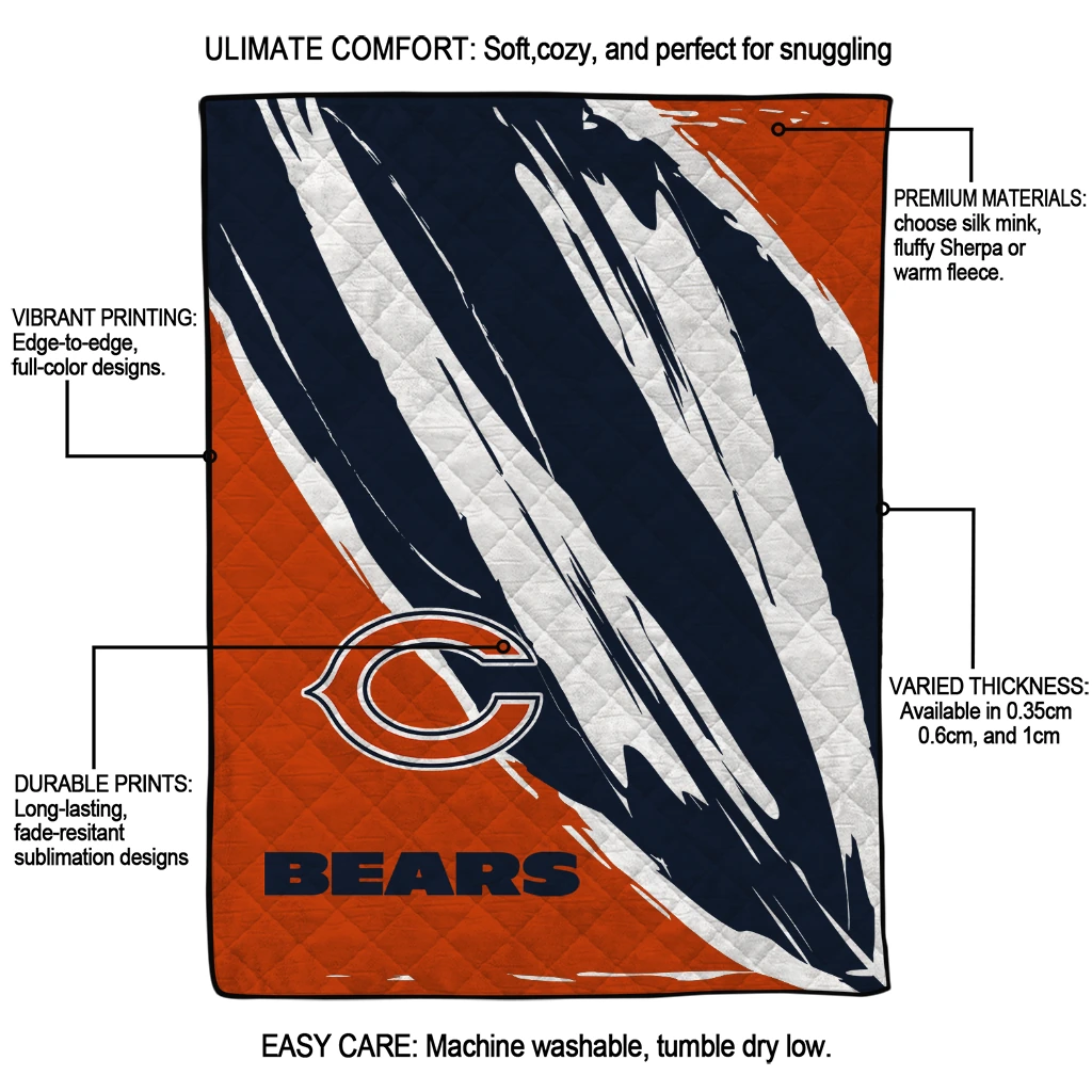 The Chicago Bears Stroke Art Blue White Quilt Blanket is more than a blanket—it’s everyday comfort, thoughtfully made. Crafted from premium quilting fabric with a soft microfiber touch, it offers a smooth hand-feel and lasting coziness. Layered quilting with a cotton-filled core provides adaptable warmth across seasons while maintaining a clean, tailored look on your bed or sofa.