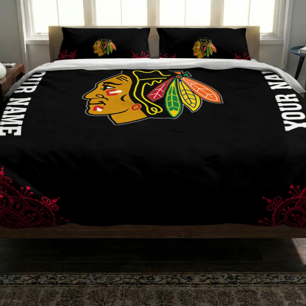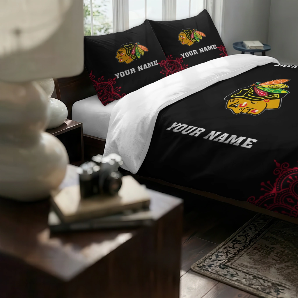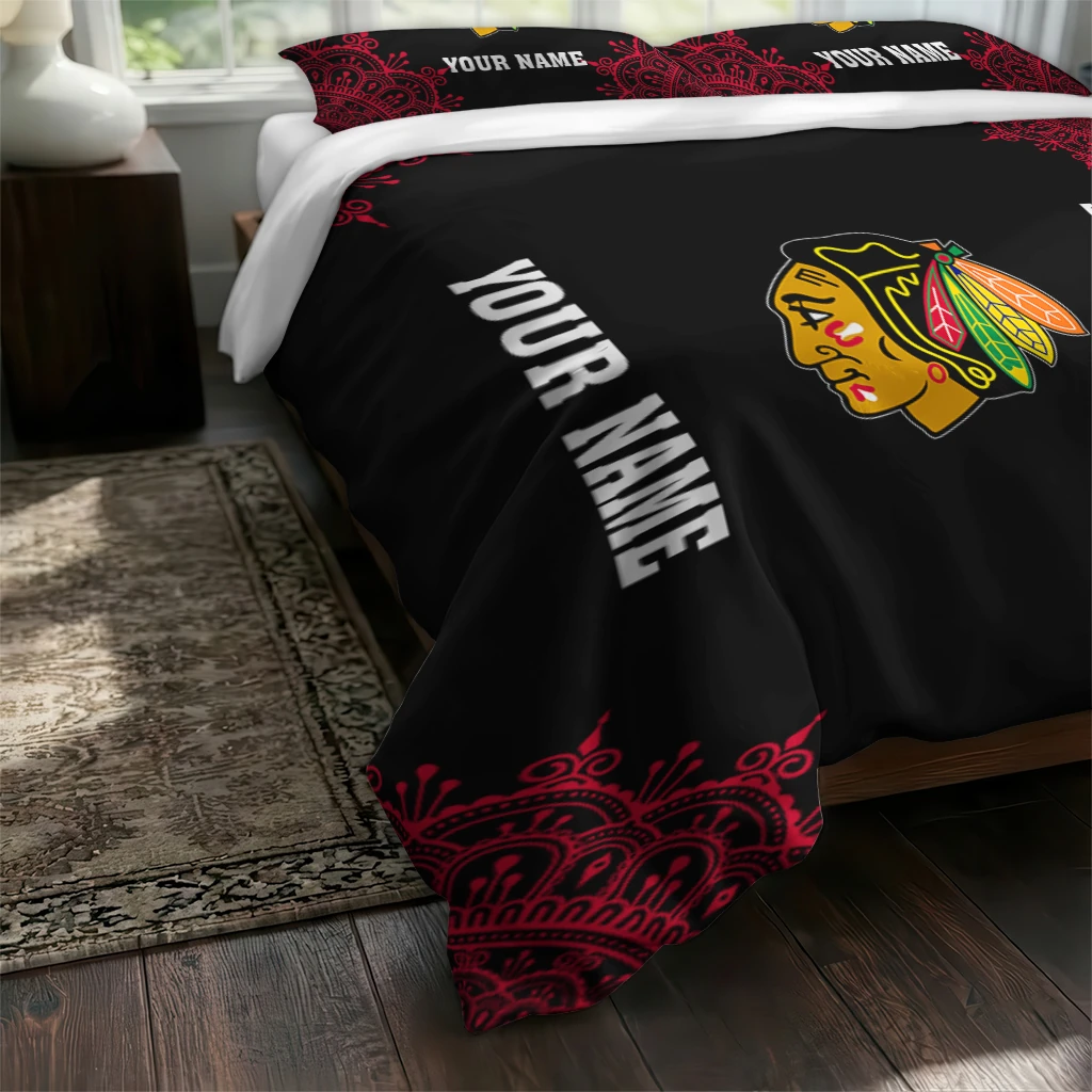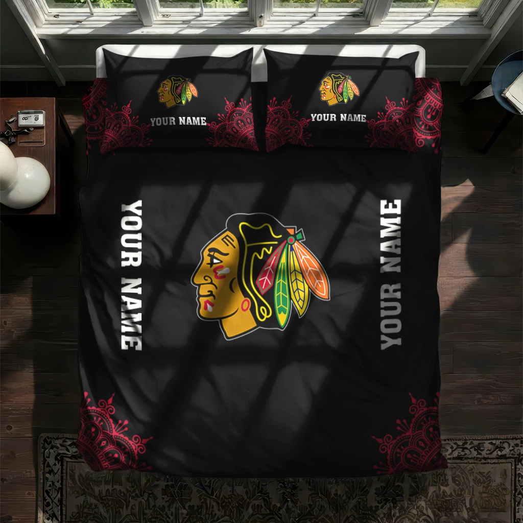 Chicago Blackhawks Bedding Set – Customized Mandala Lacework Black Red