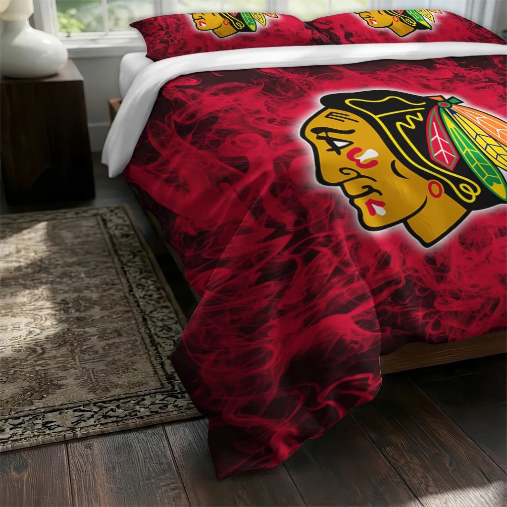 The Chicago Blackhawks Bedding Set – Red Mist Red Black makes your room feel complete, warm, and overflowing with team pride. Designed for true fans, this bedding set from the Chicago Blackhawks Bedding Sets collection at Yes That Blanket turns your sanctuary into a cozy retreat where sport style meets ultimate relaxation. Experience the perfect blend of comfort and passion every night with a finish so soft, you’ll never want to leave.