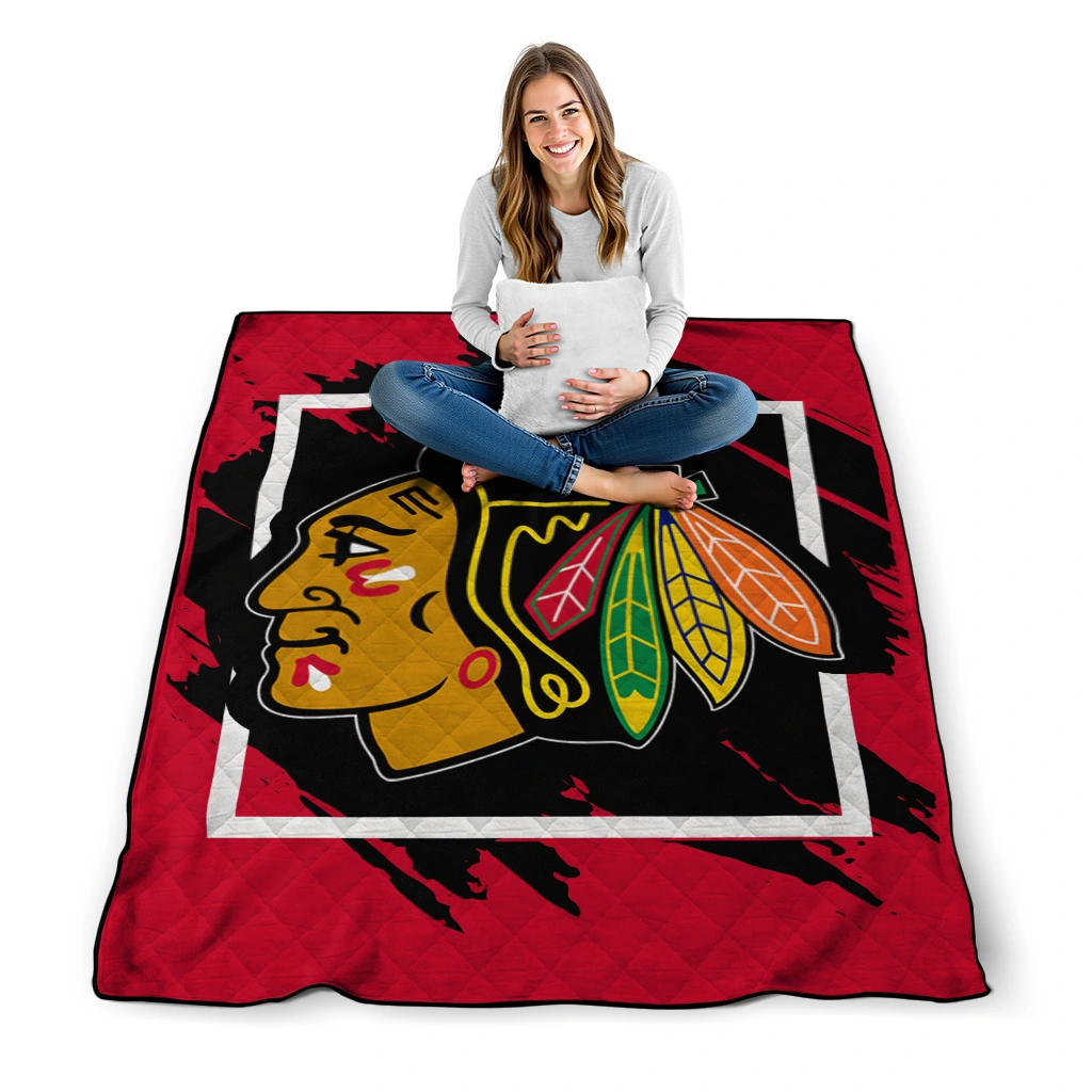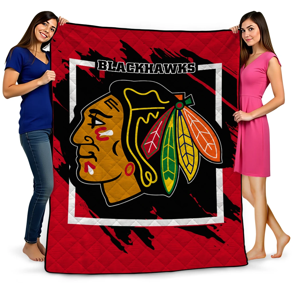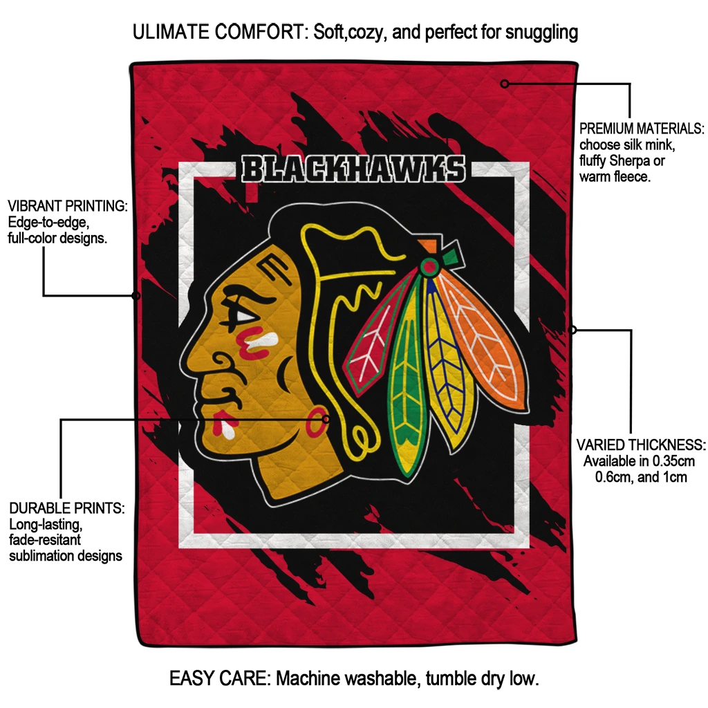 Chicago Blackhawks Block Border Red Quilt Blanket