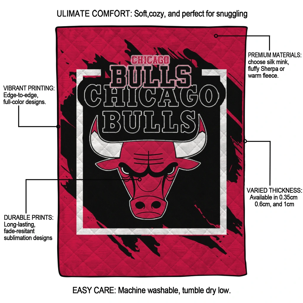 Wrap yourself in warmth and pride with the Chicago Bulls Block Border Red Quilt Blanket from the Chicago Bulls Blankets collection at Yes That Blanket. Made from 100% premium quilting-weight polyester blended with a touch of microfiber, this quilt offers a smooth, soft finish you’ll love. Choose between two quilting styles—Stipple or Diagonal—and enjoy the comfort of a cotton-filled layer inside that adds extra coziness for every season. The border is available in classic black or white, giving your design a clean, timeless edge.