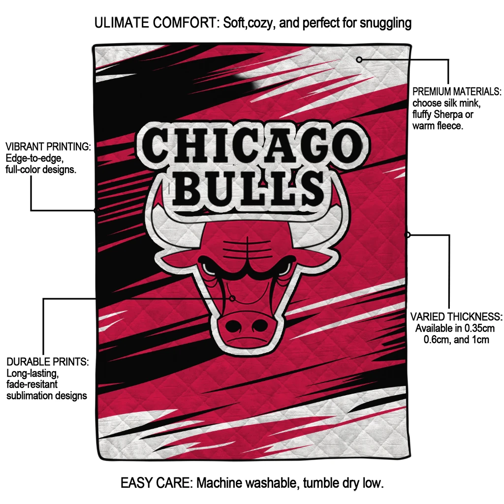 The Chicago Bulls Wild Lines Red White Quilt Blanket is more than a blanket—it’s everyday comfort, thoughtfully made. Crafted from premium quilting fabric with a soft microfiber touch, it offers a smooth hand-feel and lasting coziness. Layered quilting with a cotton-filled core provides adaptable warmth across seasons while maintaining a clean, tailored look on your bed or sofa.
