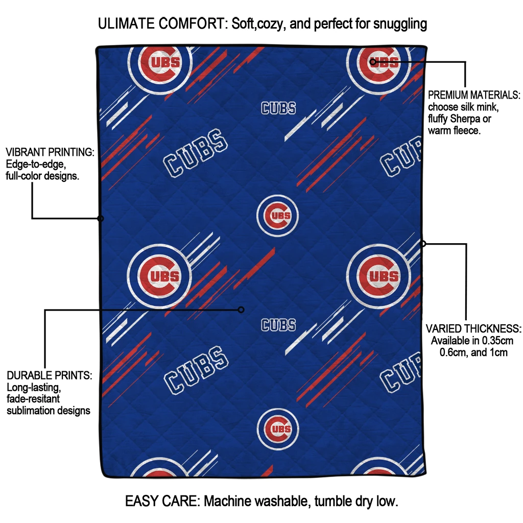 Wrap yourself in warmth and pride with the Chicago Cubs Sketch Lines Blue Quilt Blanket from the Chicago Cubs Blankets collection at Yes That Blanket. Made from 100% premium quilting-weight polyester blended with a touch of microfiber, this quilt offers a smooth, soft finish you’ll love. Choose between two quilting styles—Stipple or Diagonal—and enjoy the comfort of a cotton-filled layer inside that adds extra coziness for every season. The border is available in classic black or white, giving your design a clean, timeless edge.
