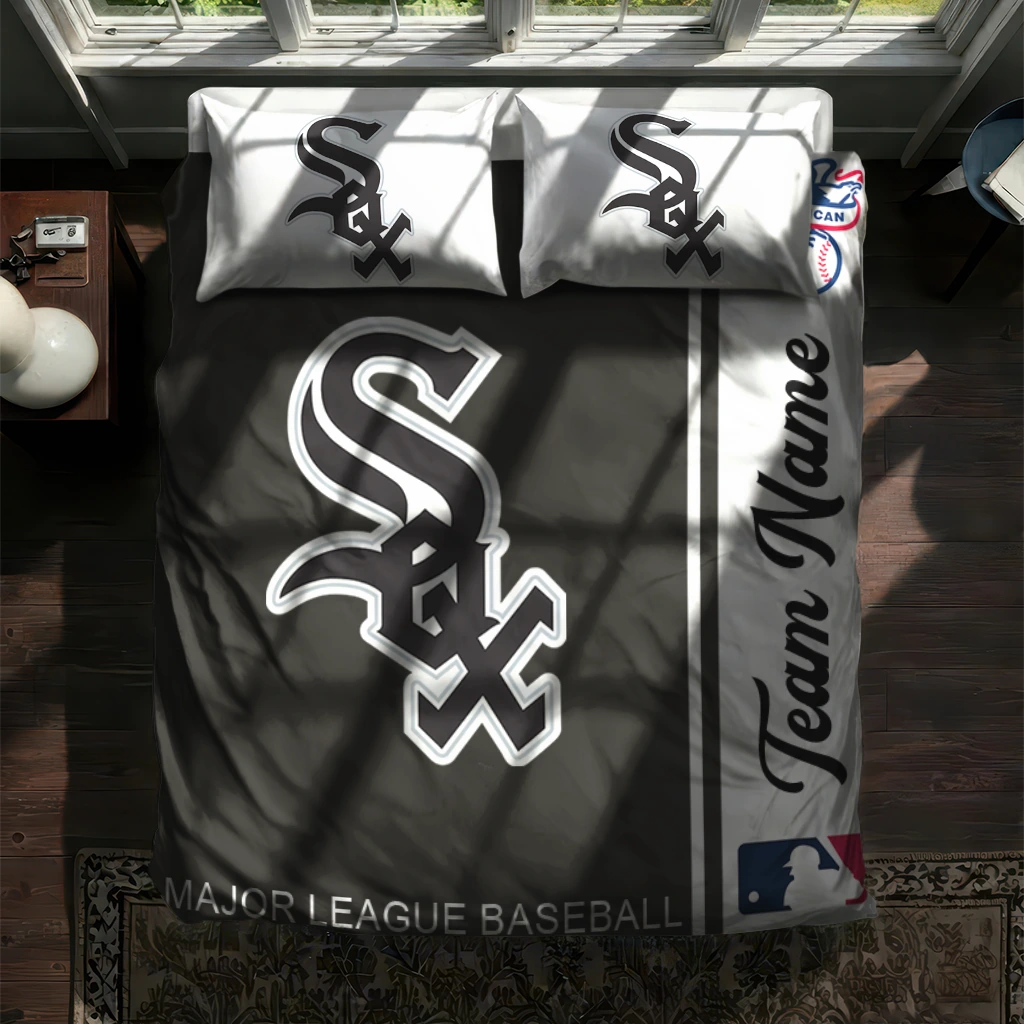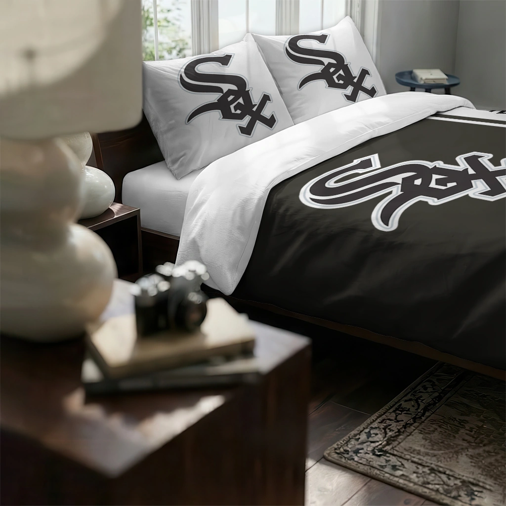 Chicago White Sox Bedding Set – Personalized MLB Logo Black White