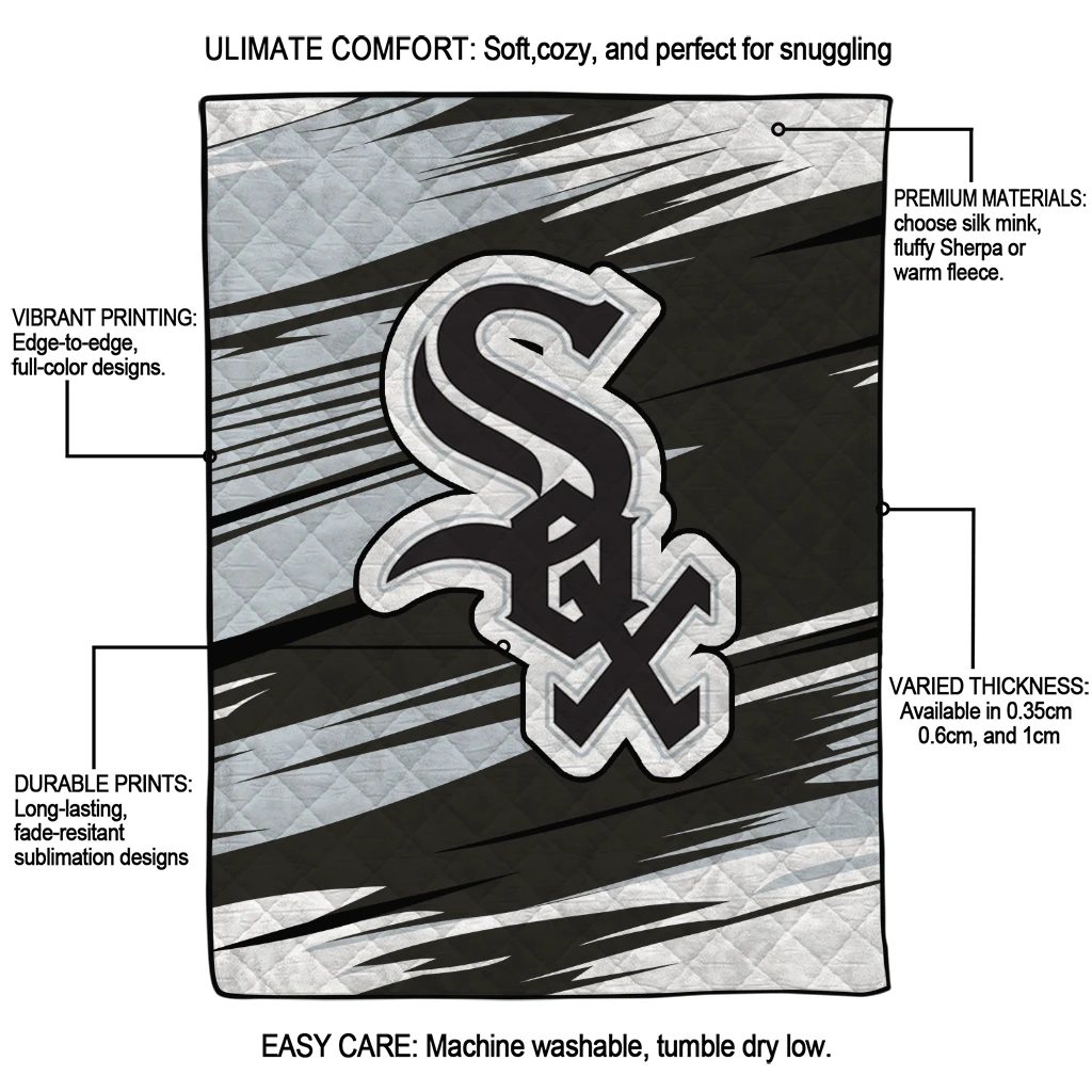 The Chicago White Sox Wild Lines Black White Quilt Blanket is more than a blanket—it’s everyday comfort, thoughtfully made. Crafted from premium quilting fabric with a soft microfiber touch, it offers a smooth hand-feel and lasting coziness. Layered quilting with a cotton-filled core provides adaptable warmth across seasons while maintaining a clean, tailored look on your bed or sofa.