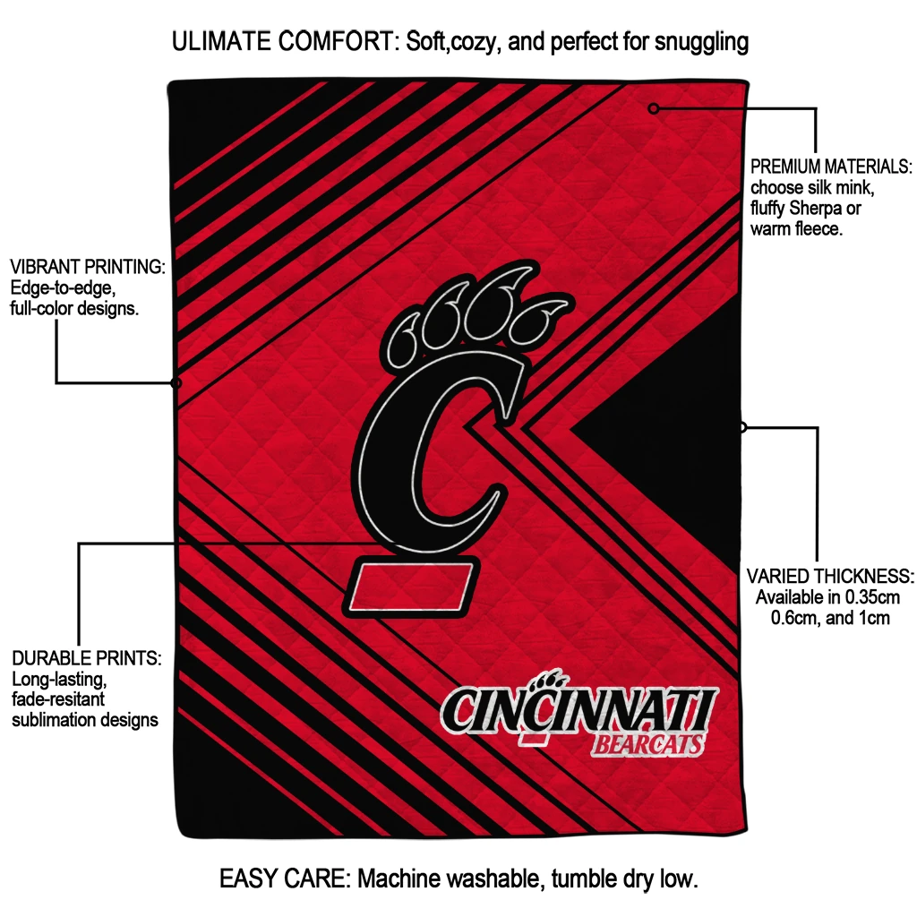 Wrap yourself in warmth and pride with the Cincinnati Bearcats Arrow Layers Red Quilt Blanket from the Cincinnati Bearcats Blankets collection at Yes That Blanket. Made from 100% premium quilting-weight polyester blended with a touch of microfiber, this quilt offers a smooth, soft finish you’ll love. Choose between two quilting styles—Stipple or Diagonal—and enjoy the comfort of a cotton-filled layer inside that adds extra coziness for every season. The border is available in classic black or white, giving your design a clean, timeless edge.