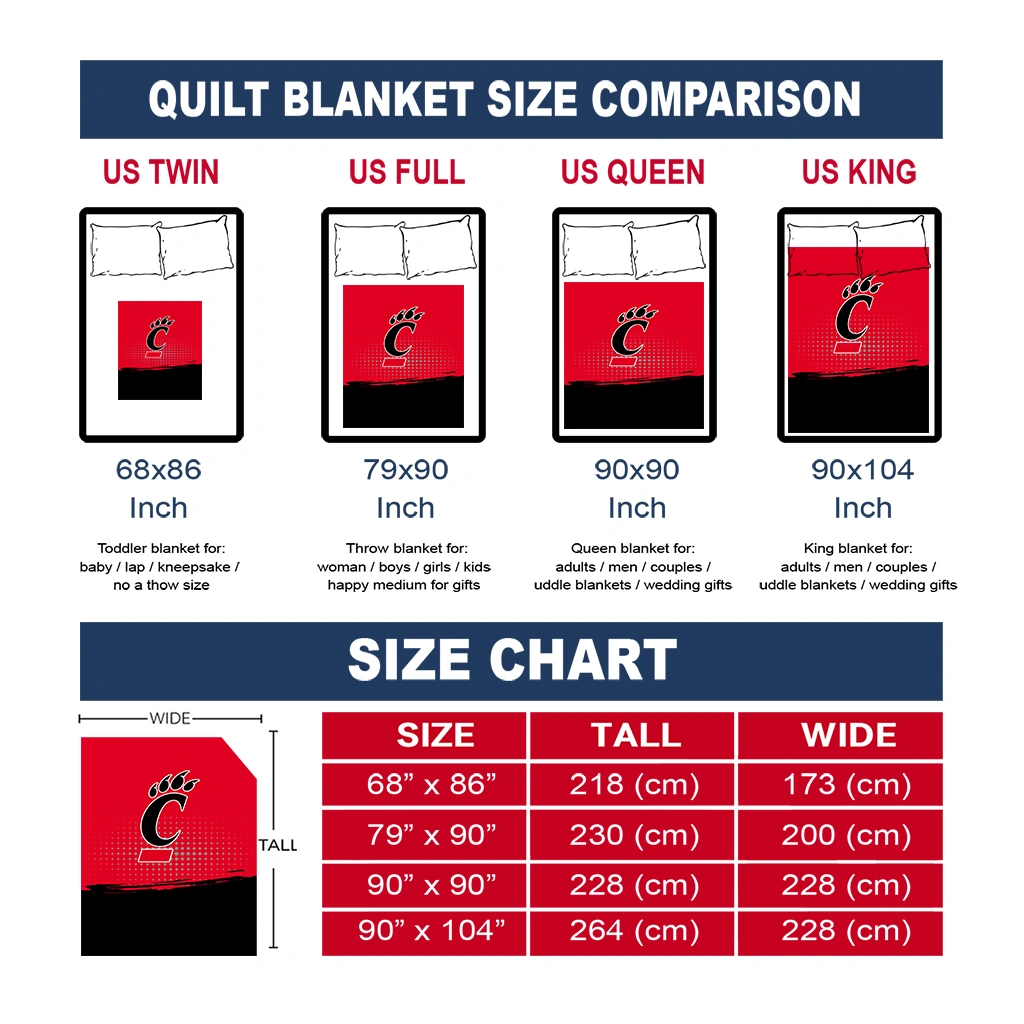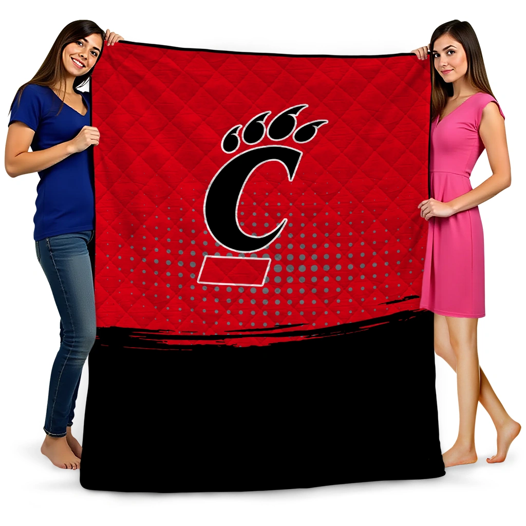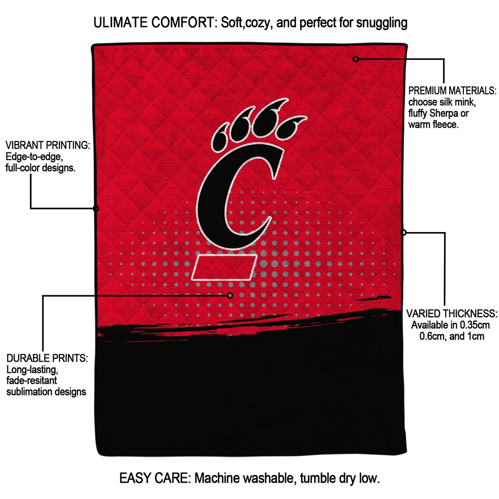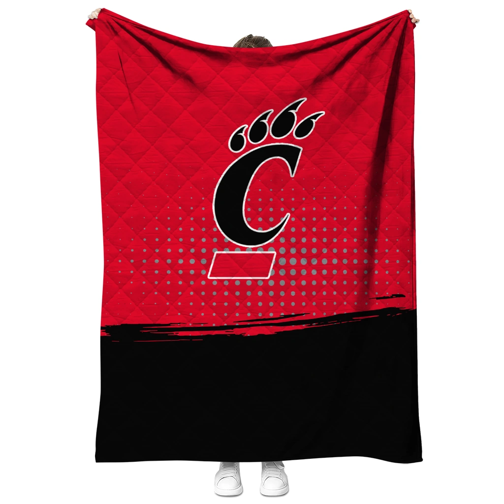 Wrap yourself in warmth and pride with the Cincinnati Bearcats Dot Illusion Red Quilt Blanket from the Cincinnati Bearcats Blankets collection at Yes That Blanket. Made from 100% premium quilting-weight polyester blended with a touch of microfiber, this quilt offers a smooth, soft finish you’ll love. Choose between two quilting styles—Stipple or Diagonal—and enjoy the comfort of a cotton-filled layer inside that adds extra coziness for every season. The border is available in classic black or white, giving your design a clean, timeless edge.