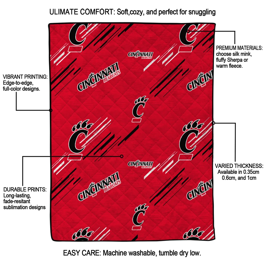 The Cincinnati Bearcats Sketch Lines Red Quilt Blanket is more than a blanket—it’s everyday comfort, thoughtfully made. Crafted from premium quilting fabric with a soft microfiber touch, it offers a smooth hand-feel and lasting coziness. Layered quilting with a cotton-filled core provides adaptable warmth across seasons while maintaining a clean, tailored look on your bed or sofa.