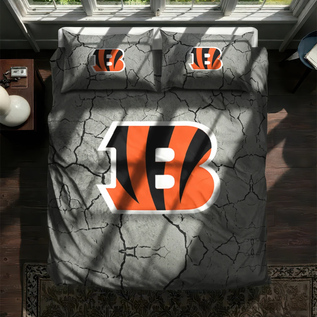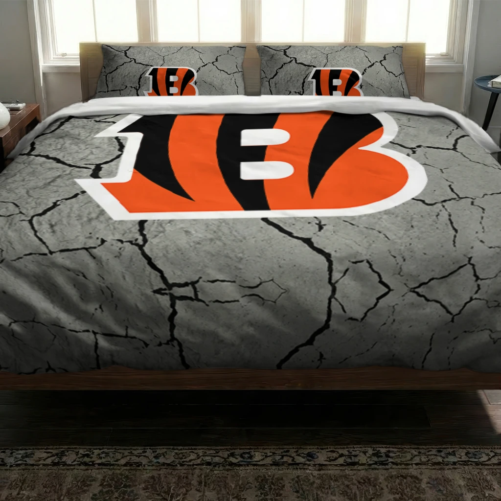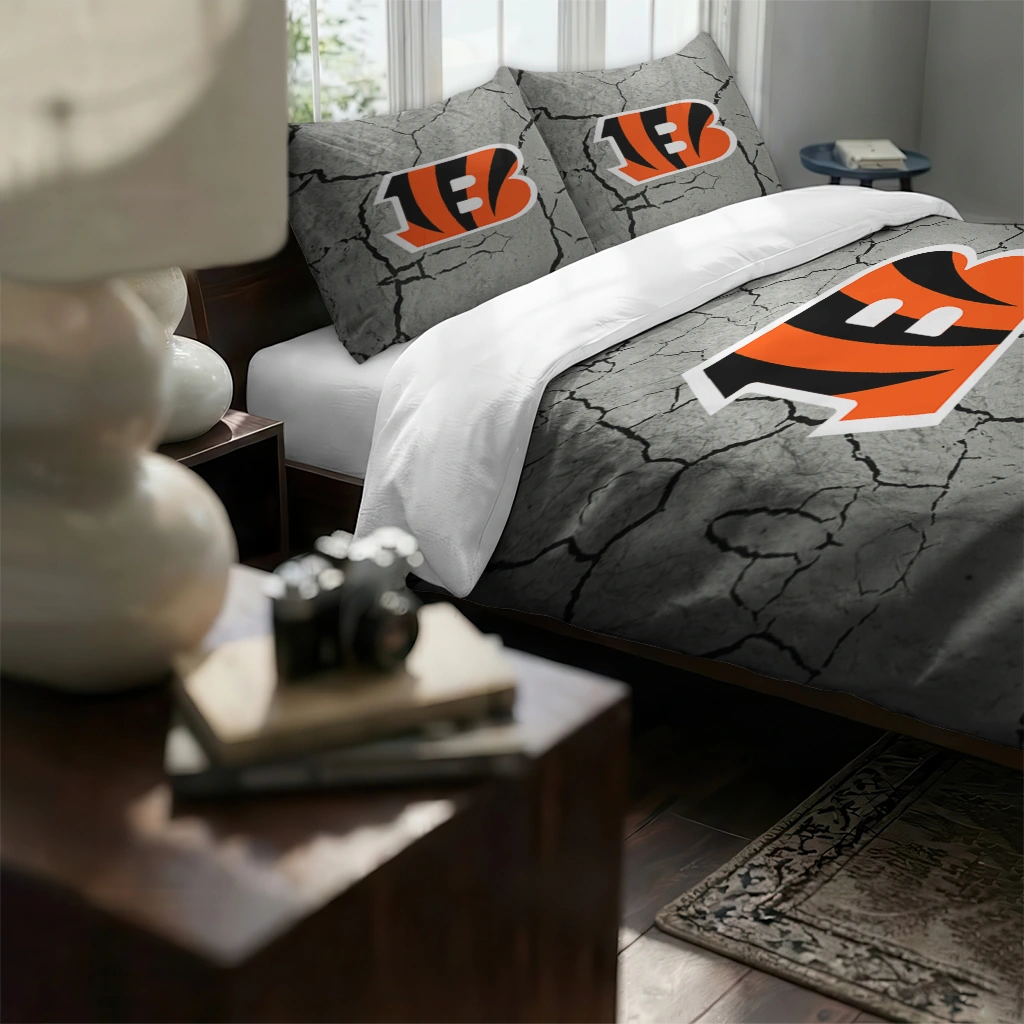 Cincinnati Bengals Bedding Set – Cracked Texture Gray Orange