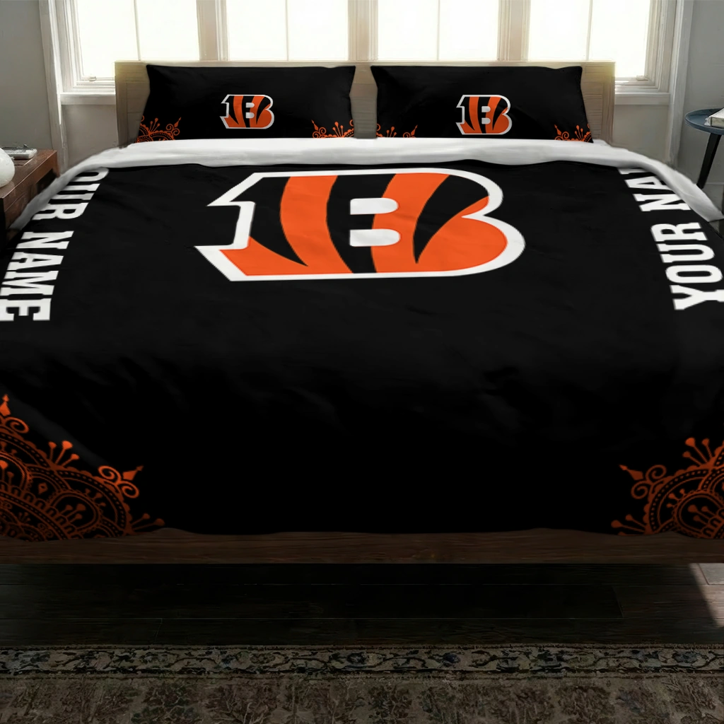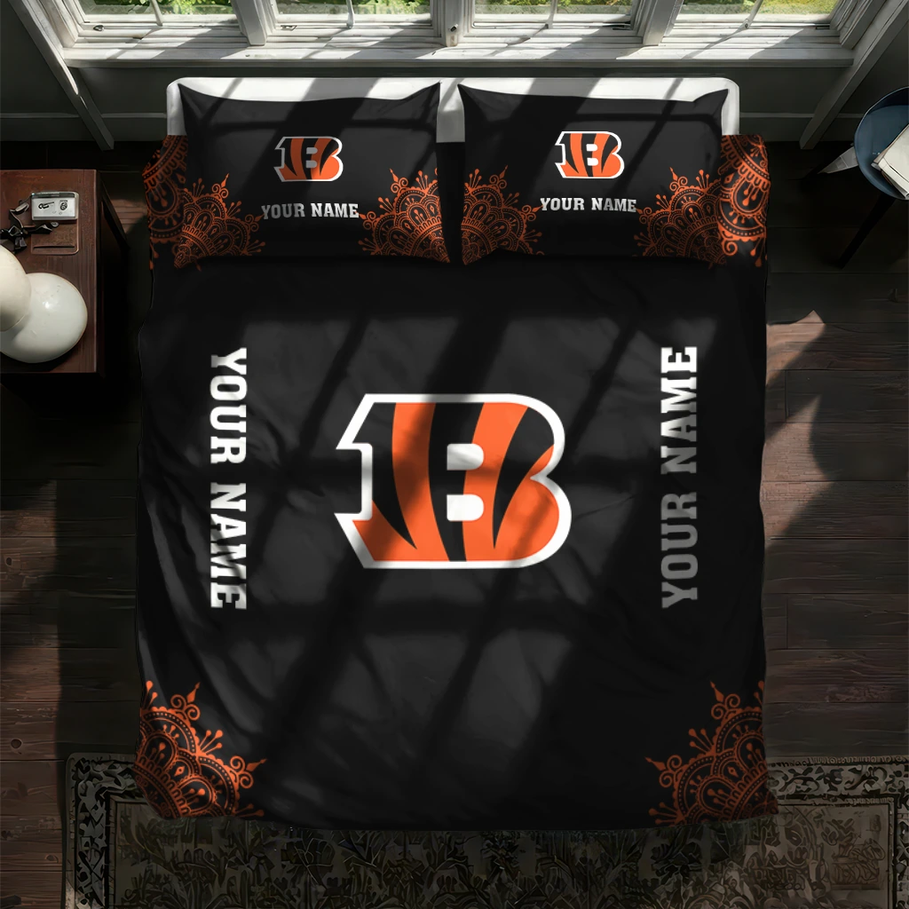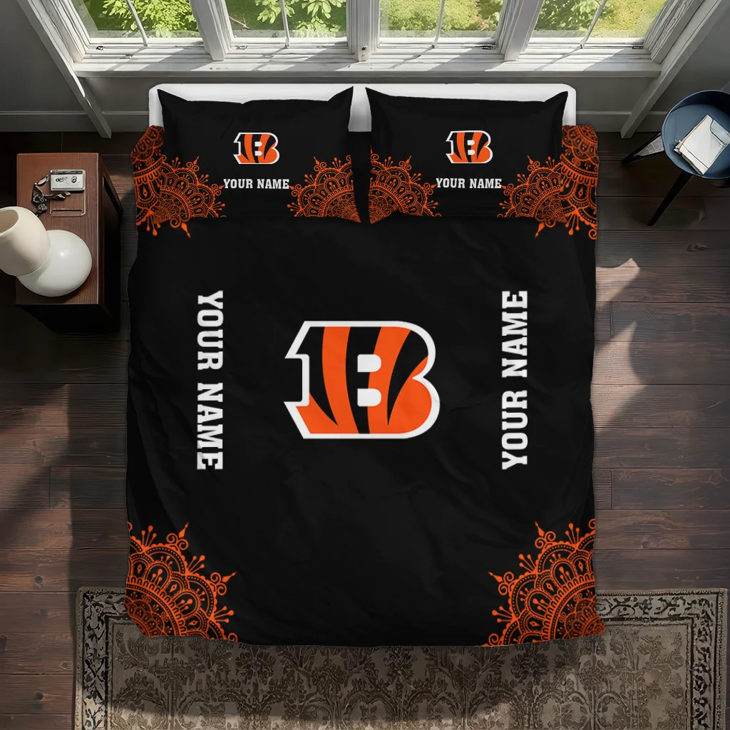 Cincinnati Bengals Bedding Set – Personalized Mandala Lacework Black Orange