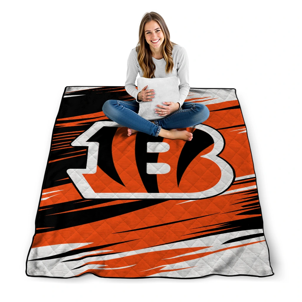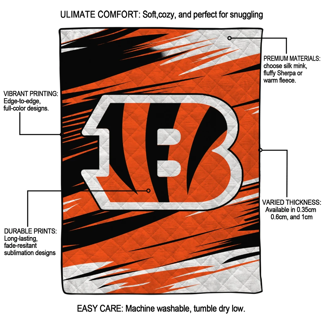Cincinnati Bengals Wild Lines Orange White Quilt Blanket