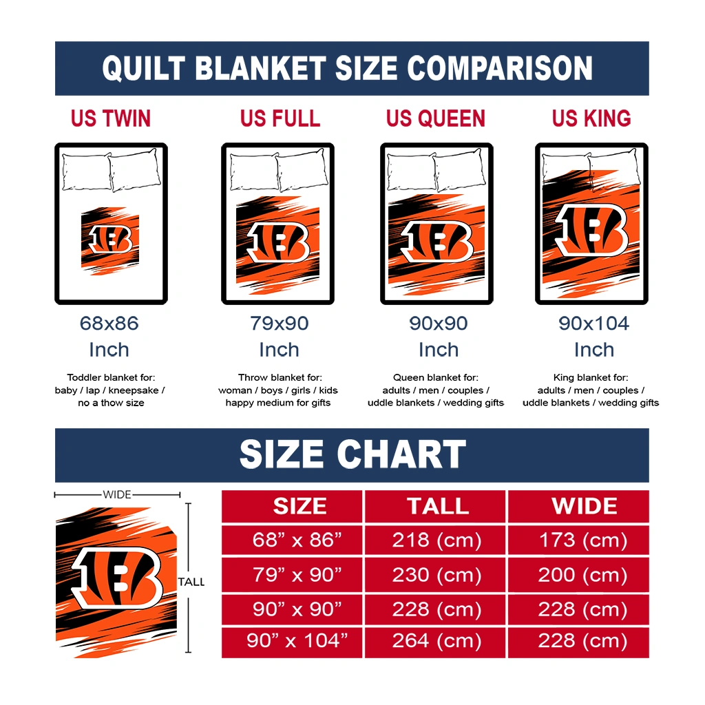 The Cincinnati Bengals Wild Lines Orange White Quilt Blanket is more than a blanket—it’s everyday comfort, thoughtfully made. Crafted from premium quilting fabric with a soft microfiber touch, it offers a smooth hand-feel and lasting coziness. Layered quilting with a cotton-filled core provides adaptable warmth across seasons while maintaining a clean, tailored look on your bed or sofa.