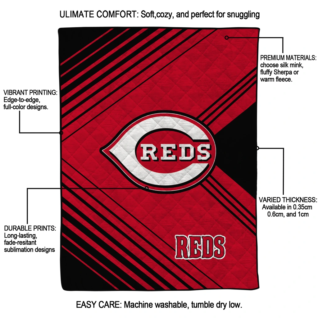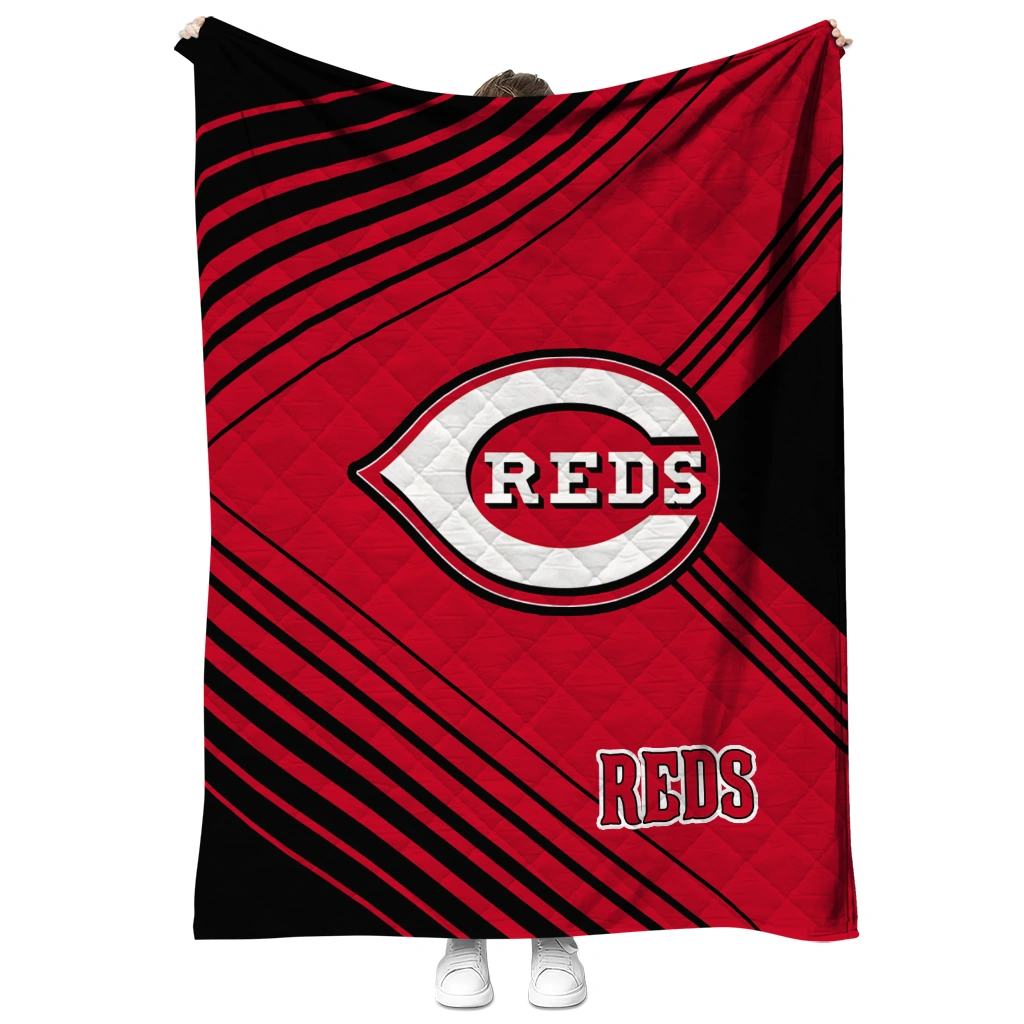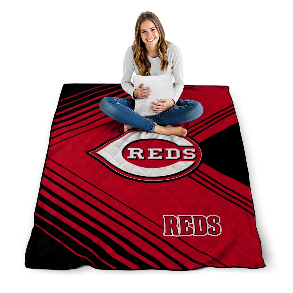 Wrap yourself in warmth and pride with the Cincinnati Reds Arrow Layers Red Quilt Blanket from the Cincinnati Reds Blankets collection at Yes That Blanket. Made from 100% premium quilting-weight polyester blended with a touch of microfiber, this quilt offers a smooth, soft finish you’ll love. Choose between two quilting styles—Stipple or Diagonal—and enjoy the comfort of a cotton-filled layer inside that adds extra coziness for every season. The border is available in classic black or white, giving your design a clean, timeless edge.