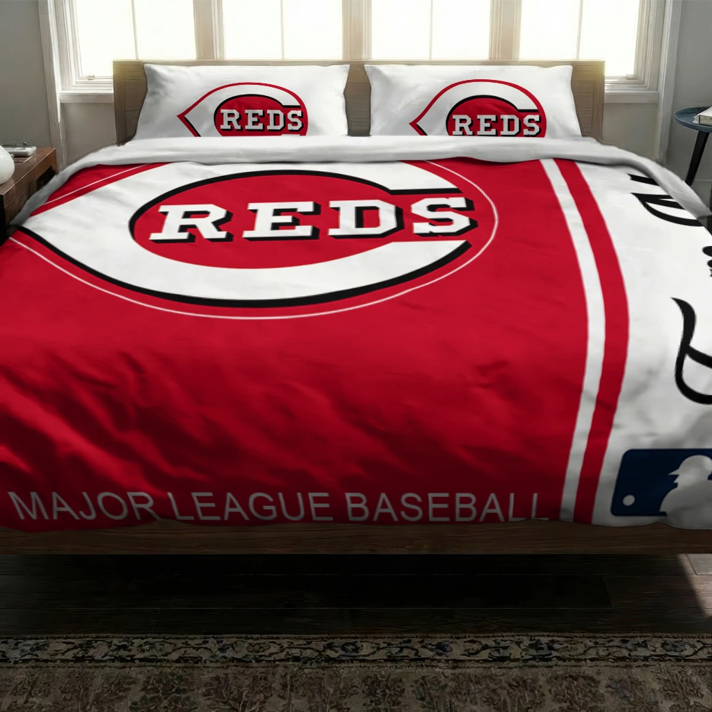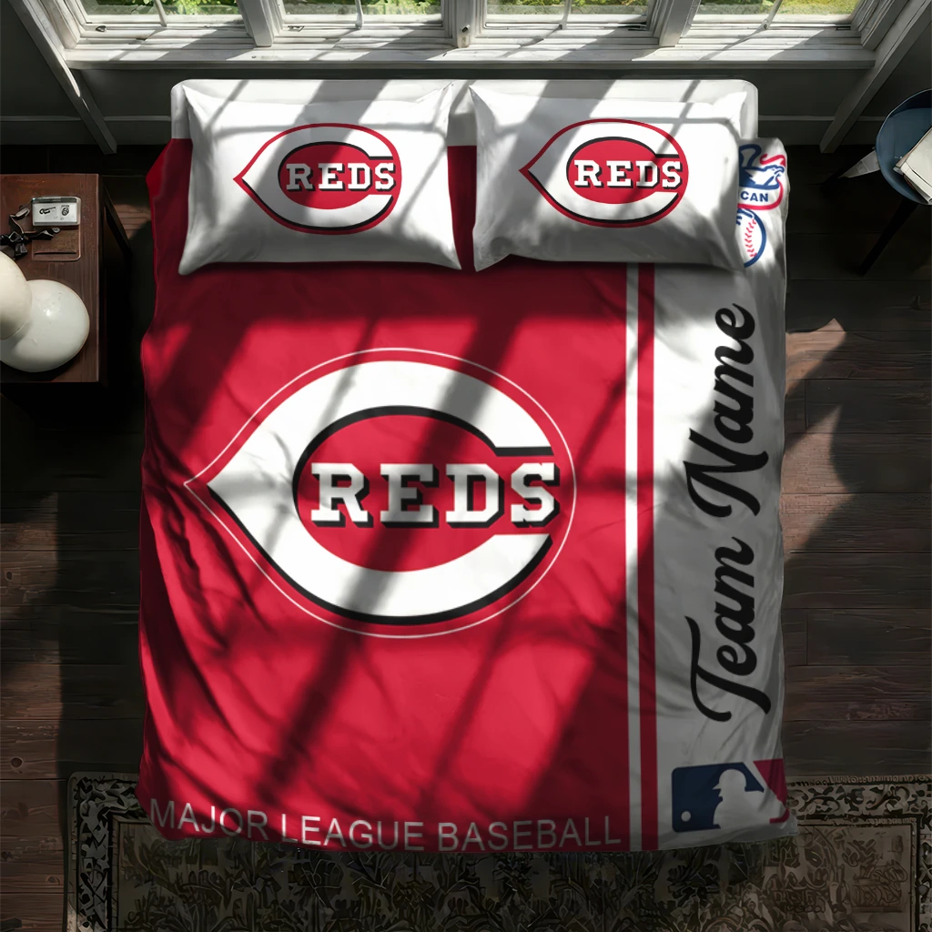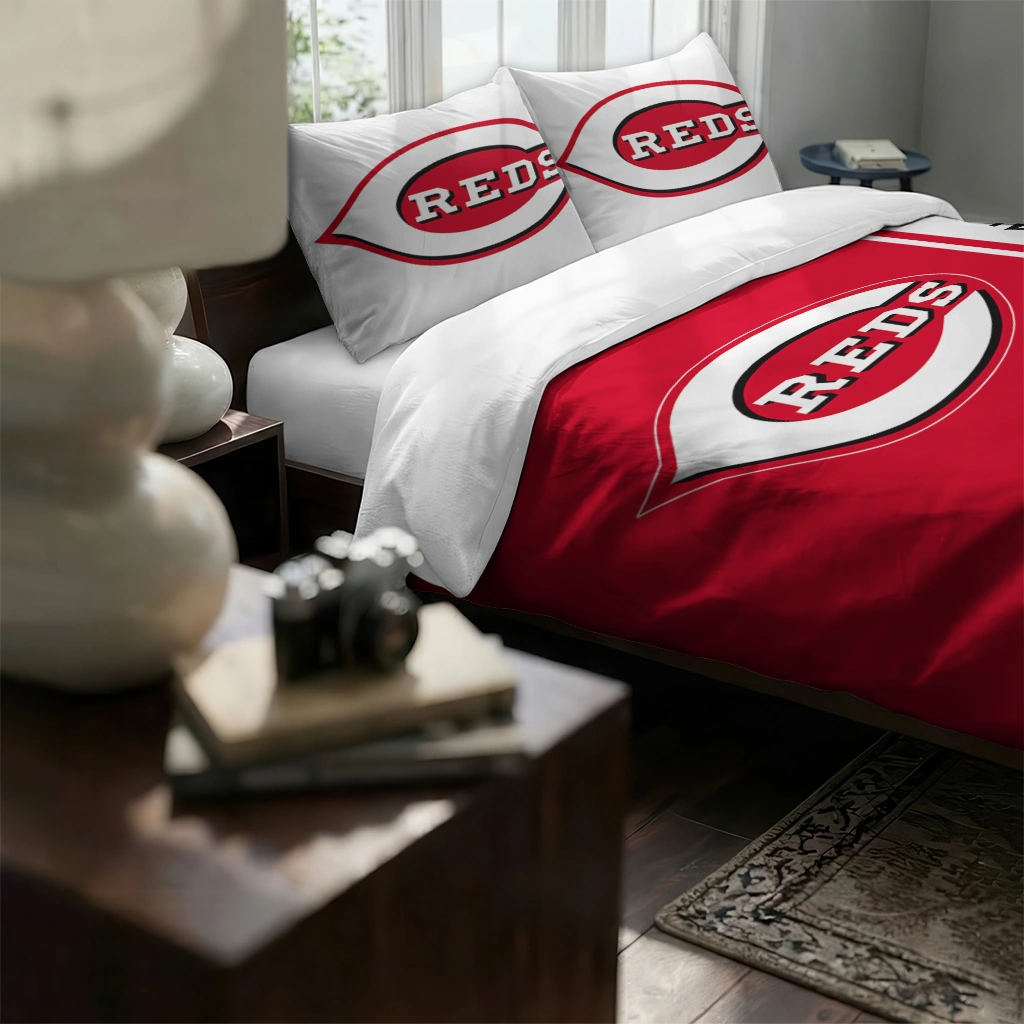 Cincinnati Reds Bedding Set – Custom MLB Logo Red White
