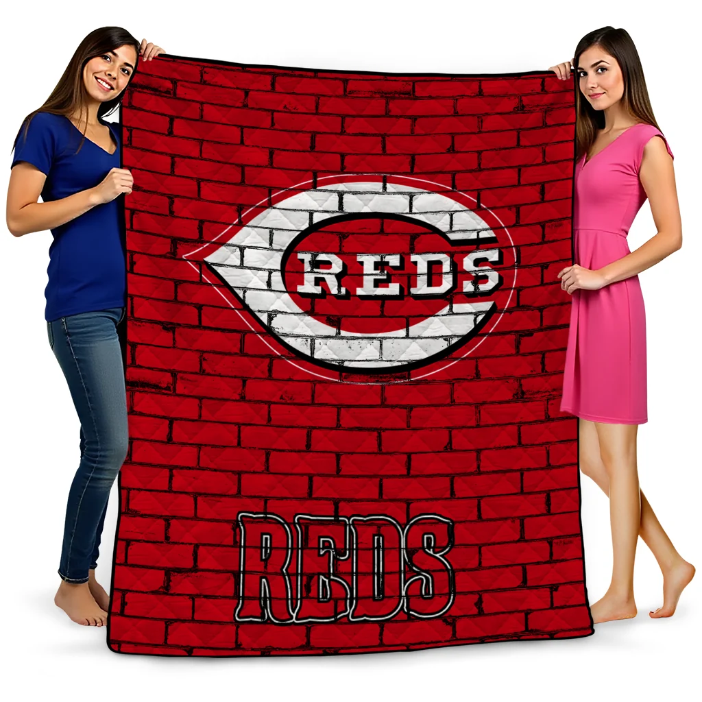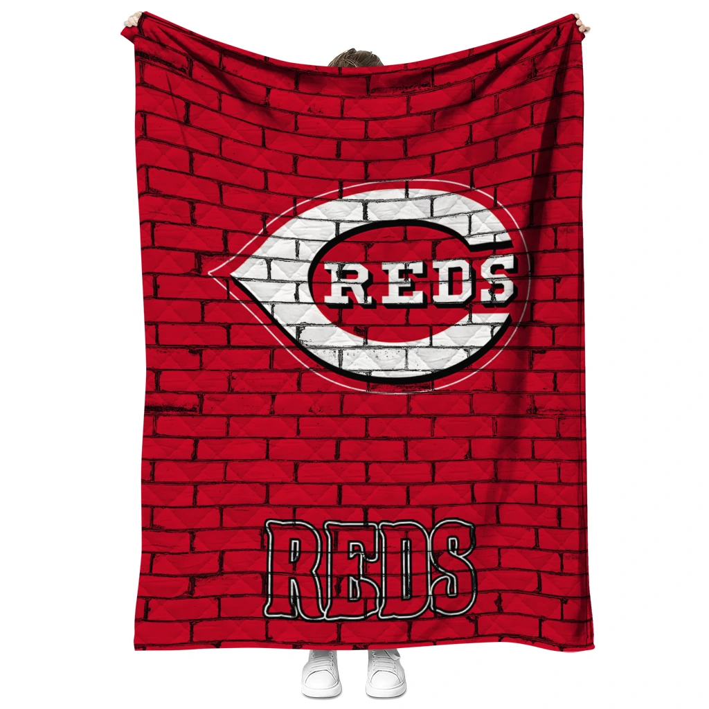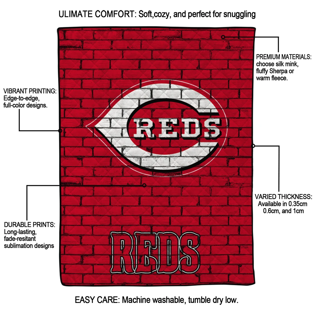 Wrap yourself in warmth and pride with the Cincinnati Reds Brick Grid Red Quilt Blanket from the Cincinnati Reds Blankets collection at Yes That Blanket. Made from 100% premium quilting-weight polyester blended with a touch of microfiber, this quilt offers a smooth, soft finish you’ll love. Choose between two quilting styles—Stipple or Diagonal—and enjoy the comfort of a cotton-filled layer inside that adds extra coziness for every season. The border is available in classic black or white, giving your design a clean, timeless edge.