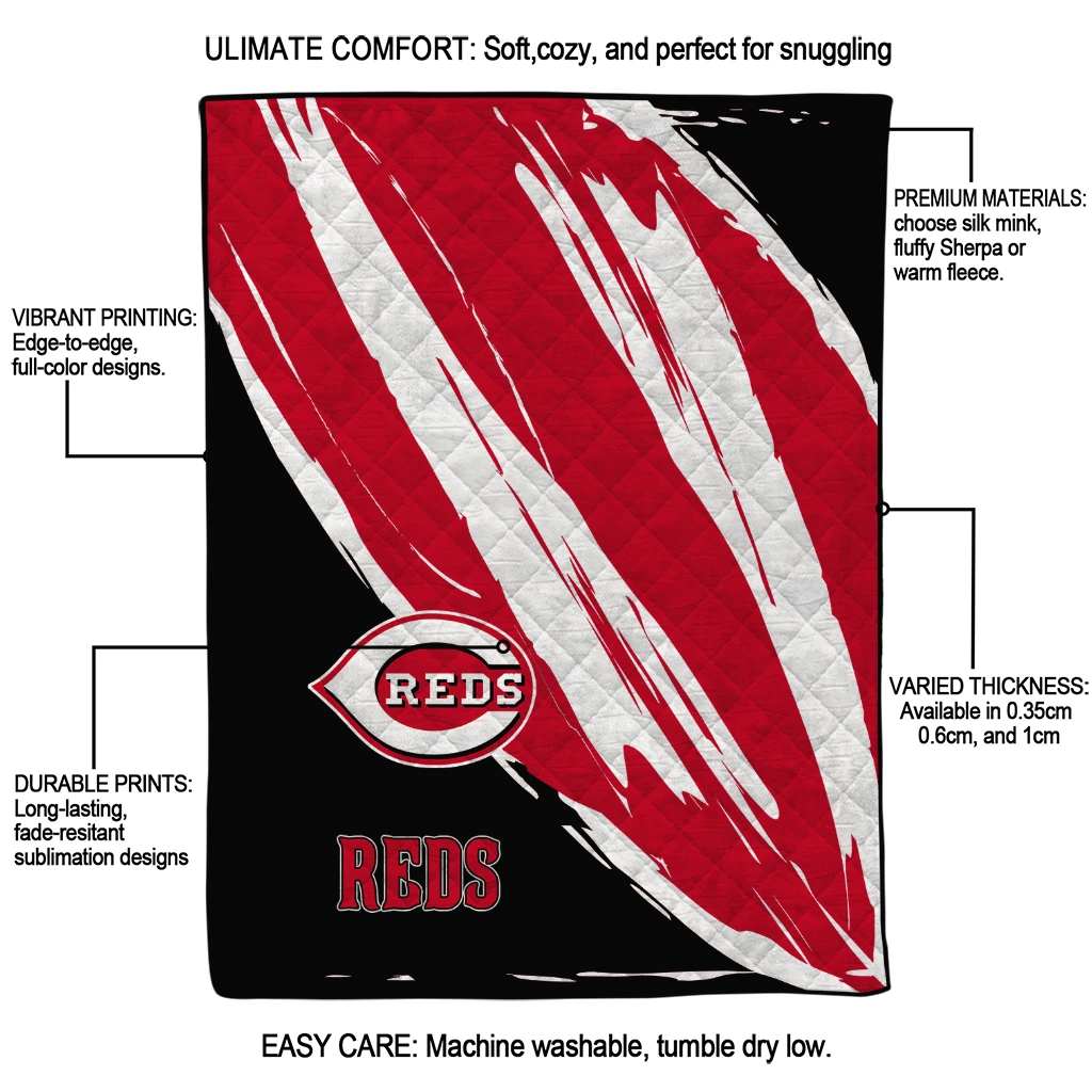 Wrap yourself in warmth and pride with the Cincinnati Reds Stroke Art Red White Quilt Blanket from the Cincinnati Reds Blankets collection at Yes That Blanket. Made from 100% premium quilting-weight polyester blended with a touch of microfiber, this quilt offers a smooth, soft finish you’ll love. Choose between two quilting styles—Stipple or Diagonal—and enjoy the comfort of a cotton-filled layer inside that adds extra coziness for every season. The border is available in classic black or white, giving your design a clean, timeless edge.