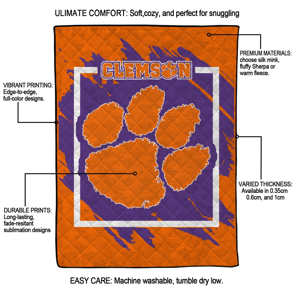 Wrap yourself in warmth and pride with the Clemson Tigers Block Border Orange Quilt Blanket from the Clemson Tigers Blankets collection at Yes That Blanket. Made from 100% premium quilting-weight polyester blended with a touch of microfiber, this quilt offers a smooth, soft finish you’ll love. Choose between two quilting styles—Stipple or Diagonal—and enjoy the comfort of a cotton-filled layer inside that adds extra coziness for every season. The border is available in classic black or white, giving your design a clean, timeless edge.