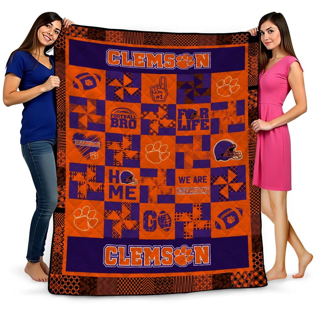 Wrap yourself in warmth and pride with the Clemson Tigers Helmet Heart Orange Quilt Blanket from the Clemson Tigers Blankets collection at Yes That Blanket. Made from 100% premium quilting-weight polyester blended with a touch of microfiber, this quilt offers a smooth, soft finish you’ll love. Choose between two quilting styles—Stipple or Diagonal—and enjoy the comfort of a cotton-filled layer inside that adds extra coziness for every season. The border is available in classic black or white, giving your design a clean, timeless edge.