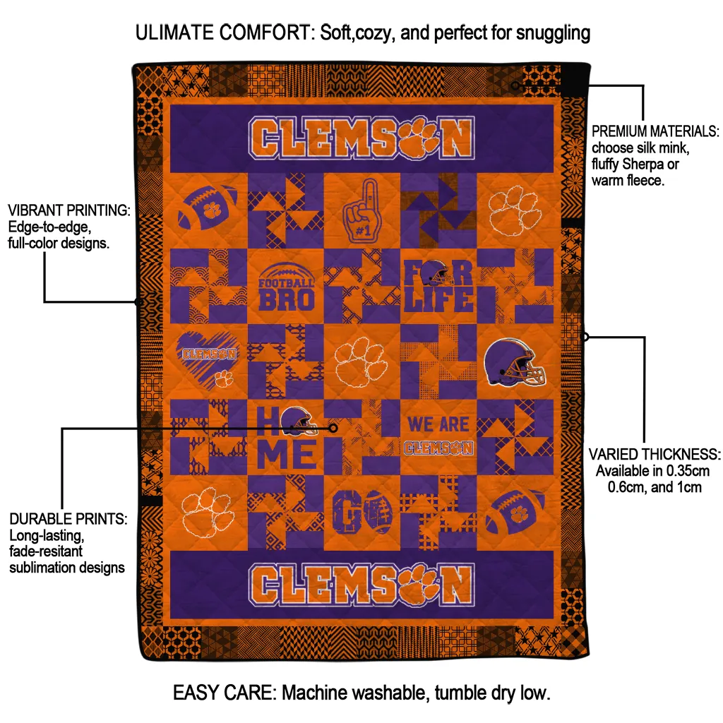 The Clemson Tigers Helmet Heart Orange Quilt Blanket is more than a blanket—it’s everyday comfort, thoughtfully made. Crafted from premium quilting fabric with a soft microfiber touch, it offers a smooth hand-feel and lasting coziness. Layered quilting with a cotton-filled core provides adaptable warmth across seasons while maintaining a clean, tailored look on your bed or sofa.