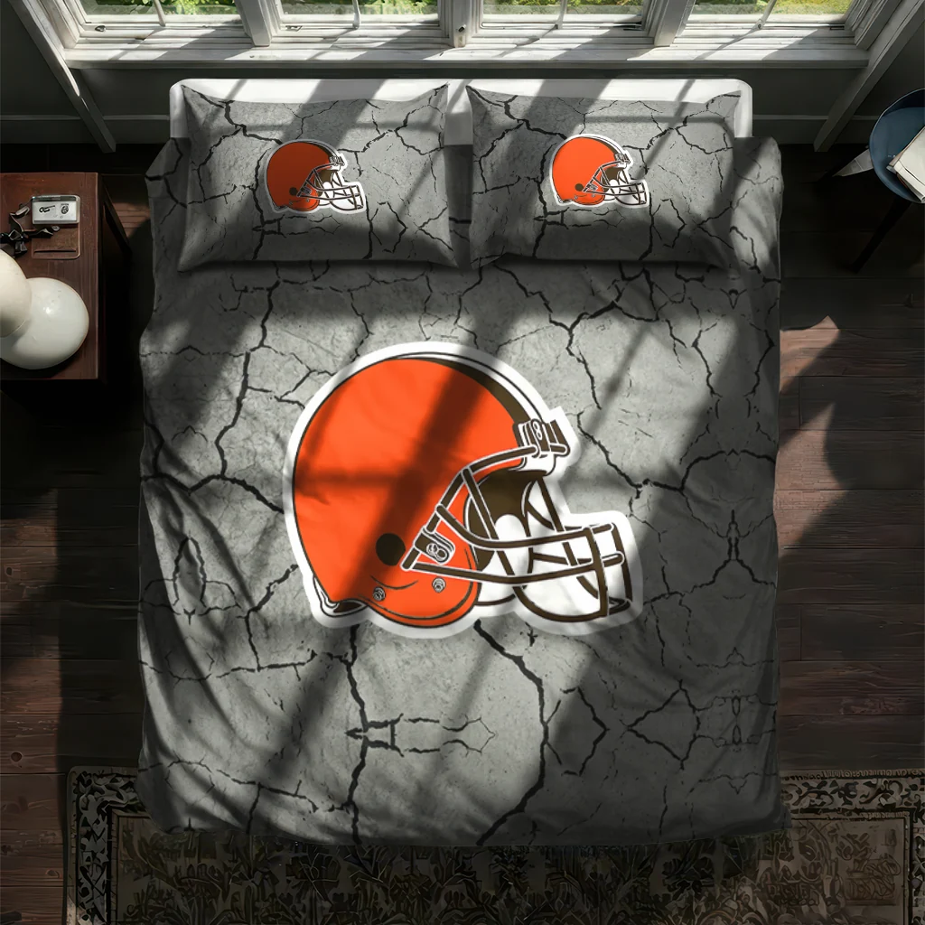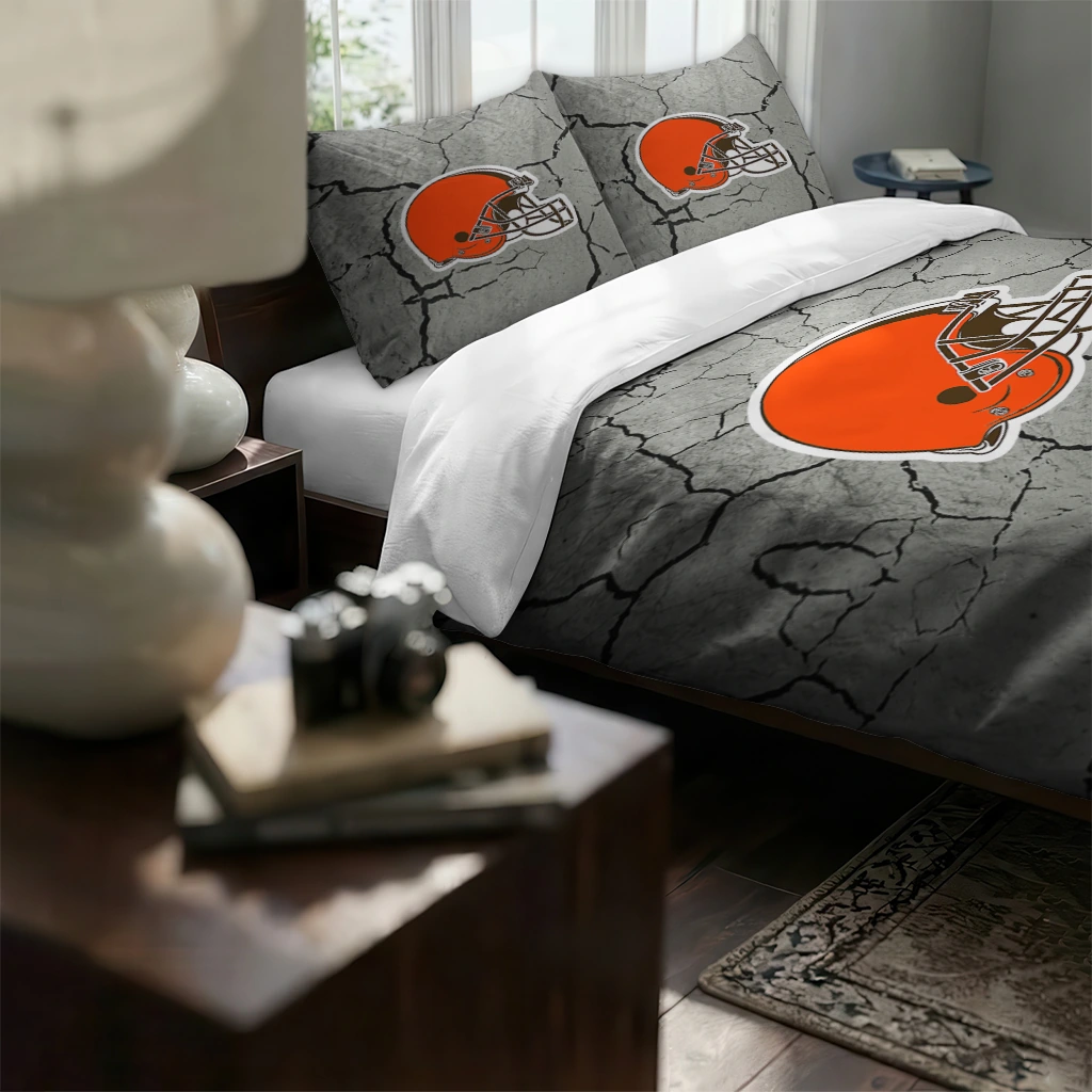 Cleveland Browns Bedding Set – Cracked Texture Gray Orange